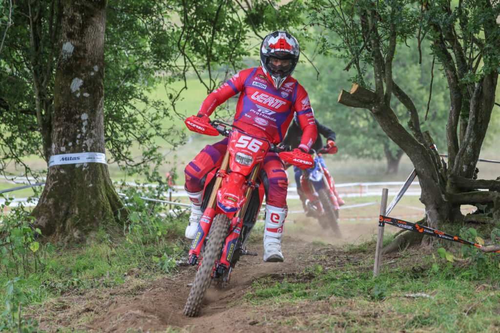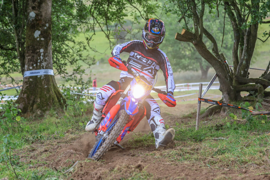 Returning to EnduroGP competition, Australian wildcard Angus Riordan (KTM) set a time that initially looked difficult to match. As the EnduroGP class took to the track, rider after rider failed to topple the Junior Enduro competitor, until finally, Daniel McCanney (Beta) got the better of him.