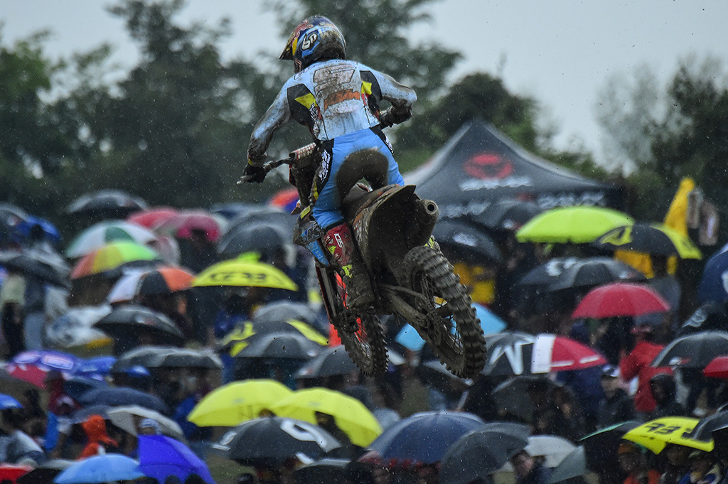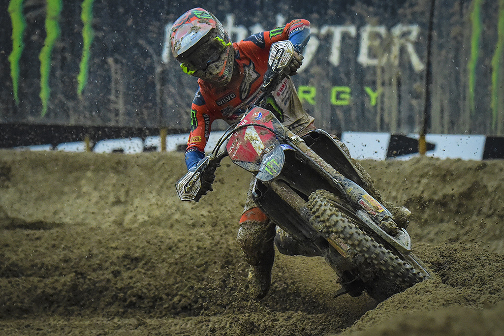 Despite the heavy downpour and the thunderstorm that rocked the day from the first warm up session until the final race of the day, this didn’t hinder Team Italy’s fighting spirit, or the support of the crowd of fans that turned out to support their nations. The trio of Cairoli, Guadagnini and Lupino put together some strong races to secure Italy’s third ever victory at the Monster Energy FIM MXoN, the first since 2002