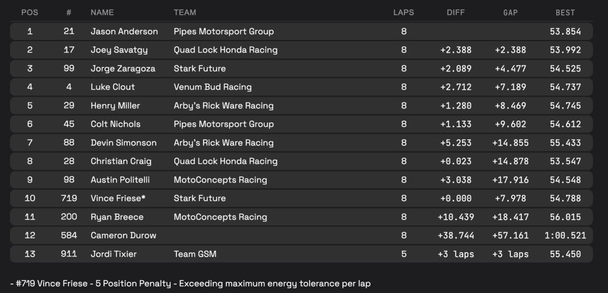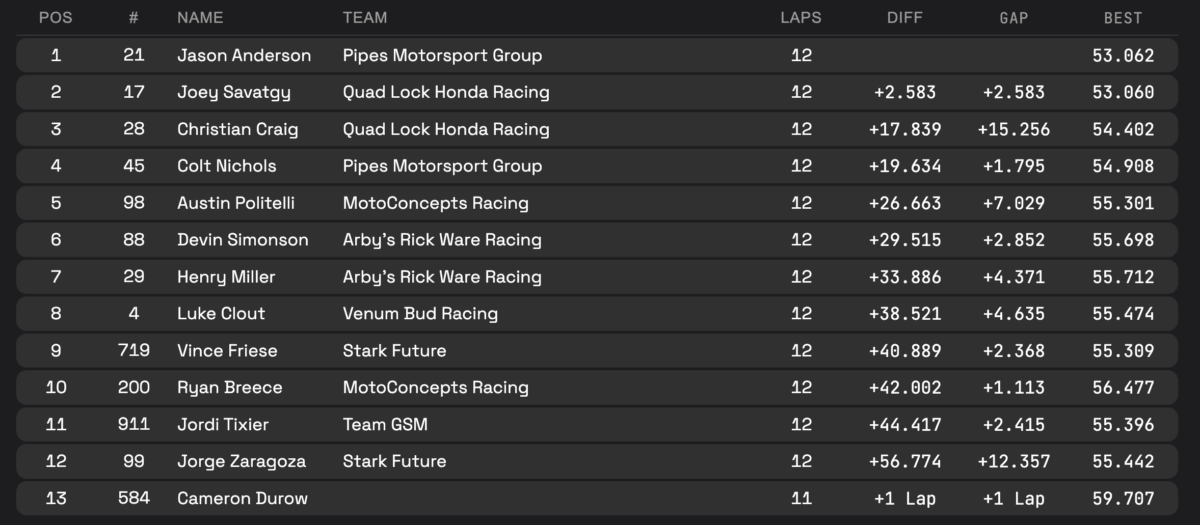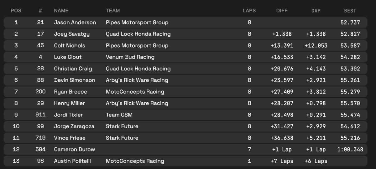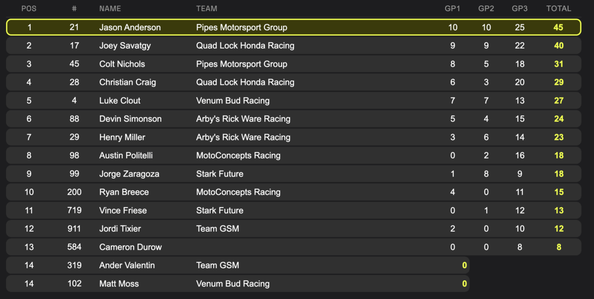 Joining Anderson and Savatgy on the podium for the night was Colt Nicholls.
