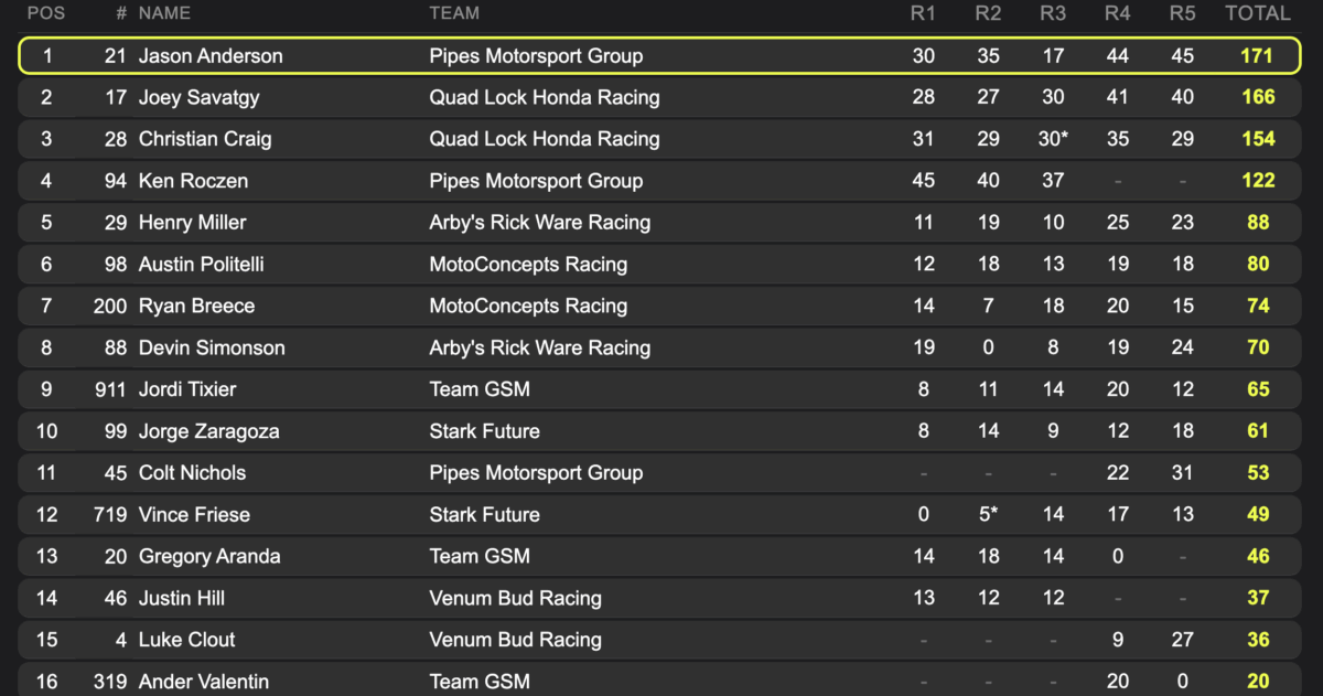 Jason Anderson has been crowned the 2025 SX1 World Supercross Champion after an epic final race showdown with Joey Savatgy where the two passed and repassed each other over the course on the race and duked it out for who would claim the title, but in the end, it was Anderson who backed up his earlier two race victories, who would take the chequers.