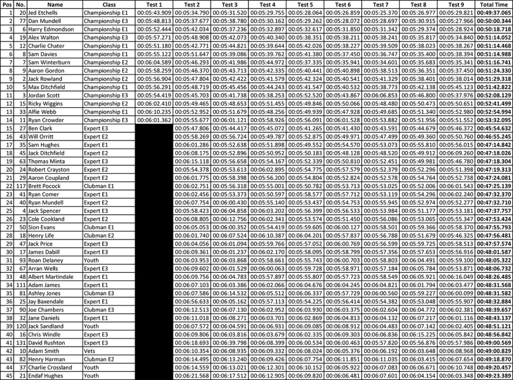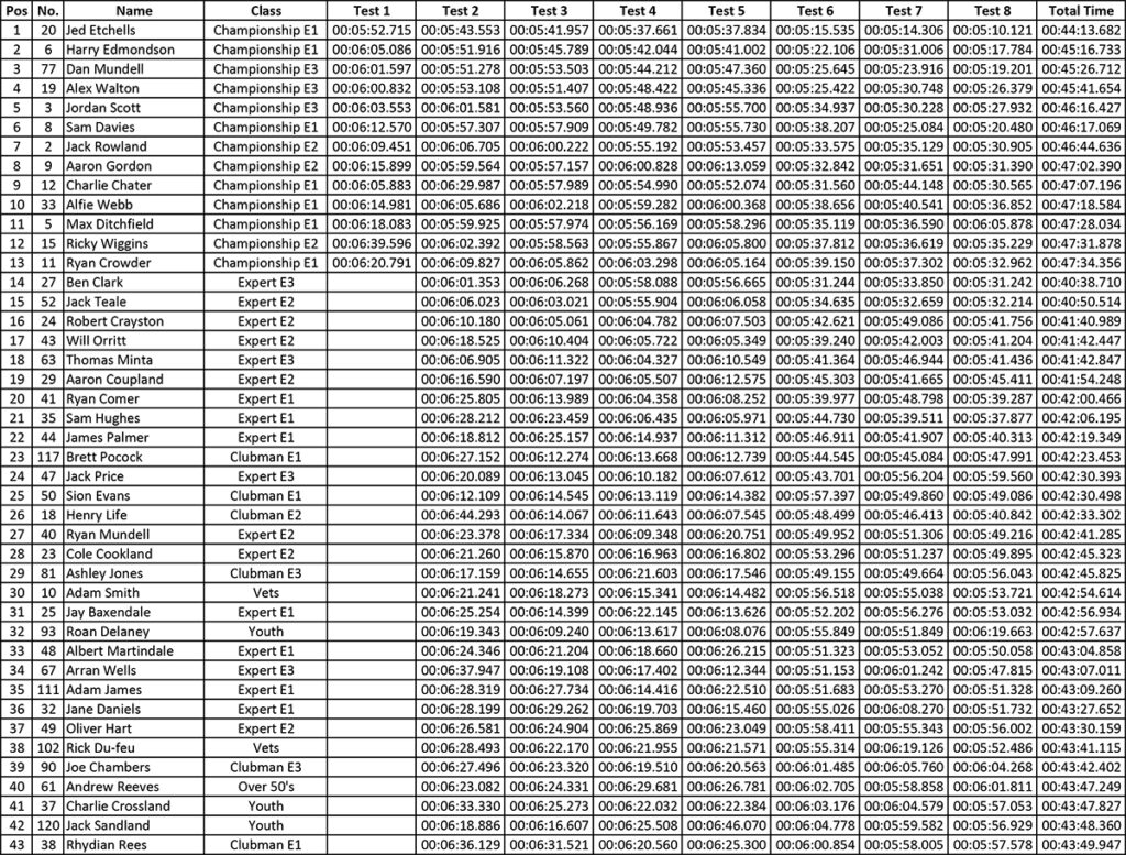 Jed Etchells was in epic form powering to wins in 16 out of the 17 tests over the weekend for both the overall and the E1 victory.