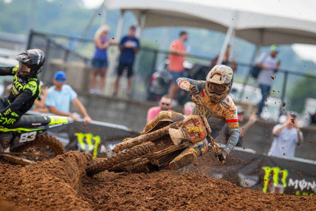 “It’s getting to the point where it’s just close to the limit, because right now you can’t really push the track at all. It can catch you really quickly if you compress the suspension too hard, and [if you] clip those ruts, especially. So, you’re just trying to play it smart and run the risk versus reward [balance]. So [I was] just really trying to get a flow and keep my laps as consistent as possible.” – Jett Lawrence, following Moto 1.