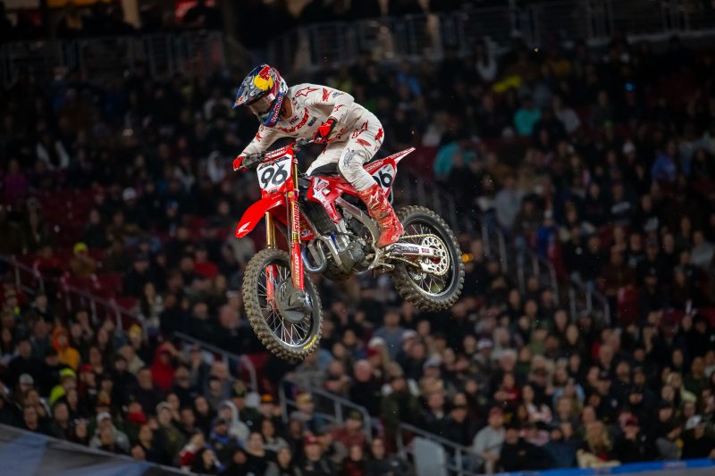 The 250SX main event saw Shimoda round the first turn just inside the top 10. The Japanese racer steadily worked his way forward to fourth place, and near the race’s midpoint, he took over third, which is where he would finish. This result marked his first podium with Team Honda HRC. SmarTop/MotoConcepts Honda’s Mitchell Oldenburg put in a great ride for sixth. Meanwhile, Oldenburg’s teammate Carson Mumford showed impressive speed all night, running in the top five for much of the race before eventually crossing the line in 11th.