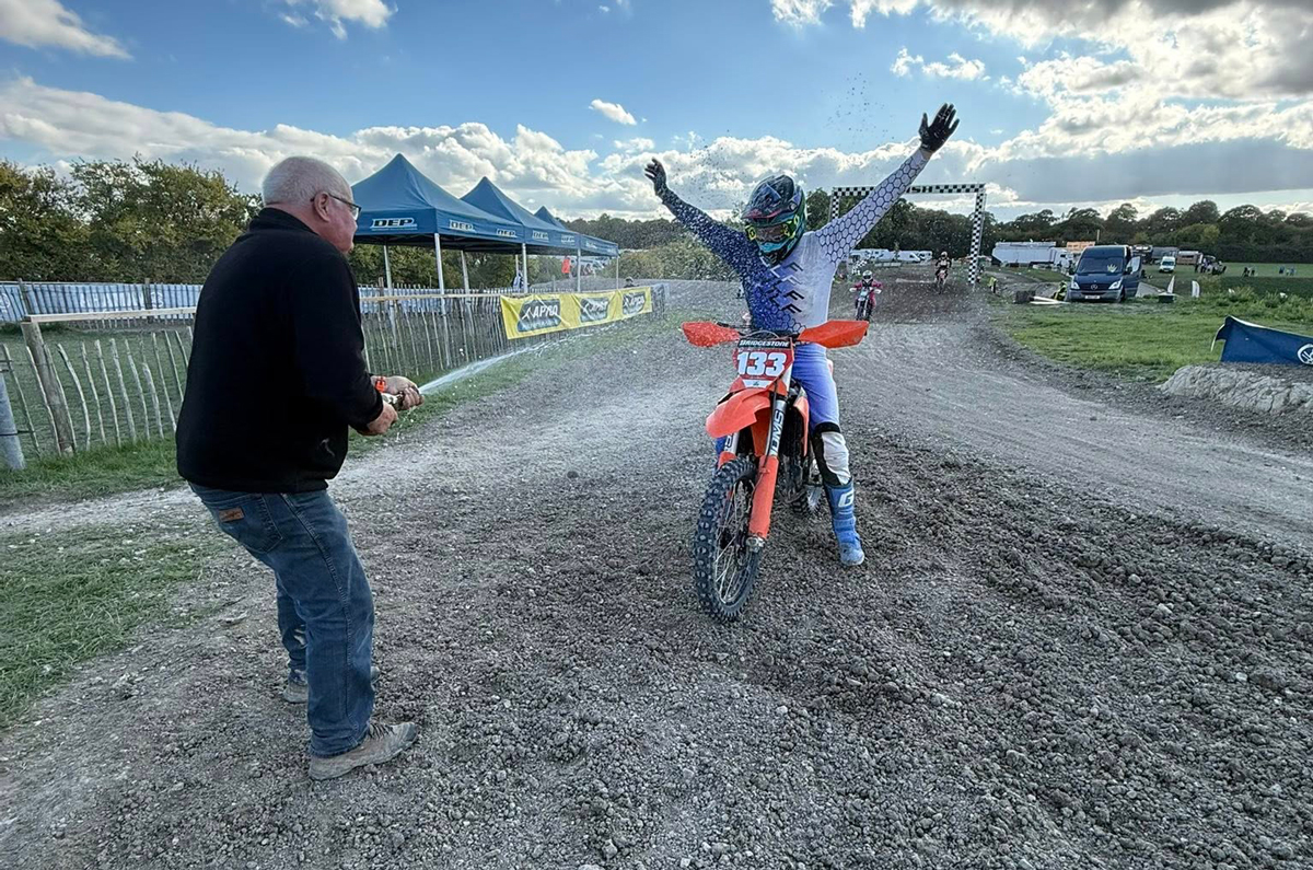 The finish saw a moment of celebration for Spinks after his season of hard work, along with his team and sponsors from Triumph West London, who had travelled to the season finale to hopefully watch a historic first UK title win for the British manufacturer’s 450. Not to mention series manager Colin Hambridge, a full-circle moment for the popular promoter with Spinks being one of the star youth riders many years ago at the Coventry Juniors motocross club.