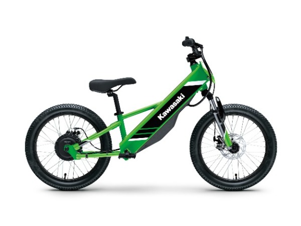 The Elektrode 20 is a variant of Kawasaki’s first electric balance bike, the Elektrode 16, following the development concept of “My First Fun to Ride”. Now with 20-inch wheels, the target age range has also increased to include adults allowing more riders to experience the off-road fun that powered two wheelers can bring while delivering Kawasaki’s ‘Fun to Ride’ spirit.