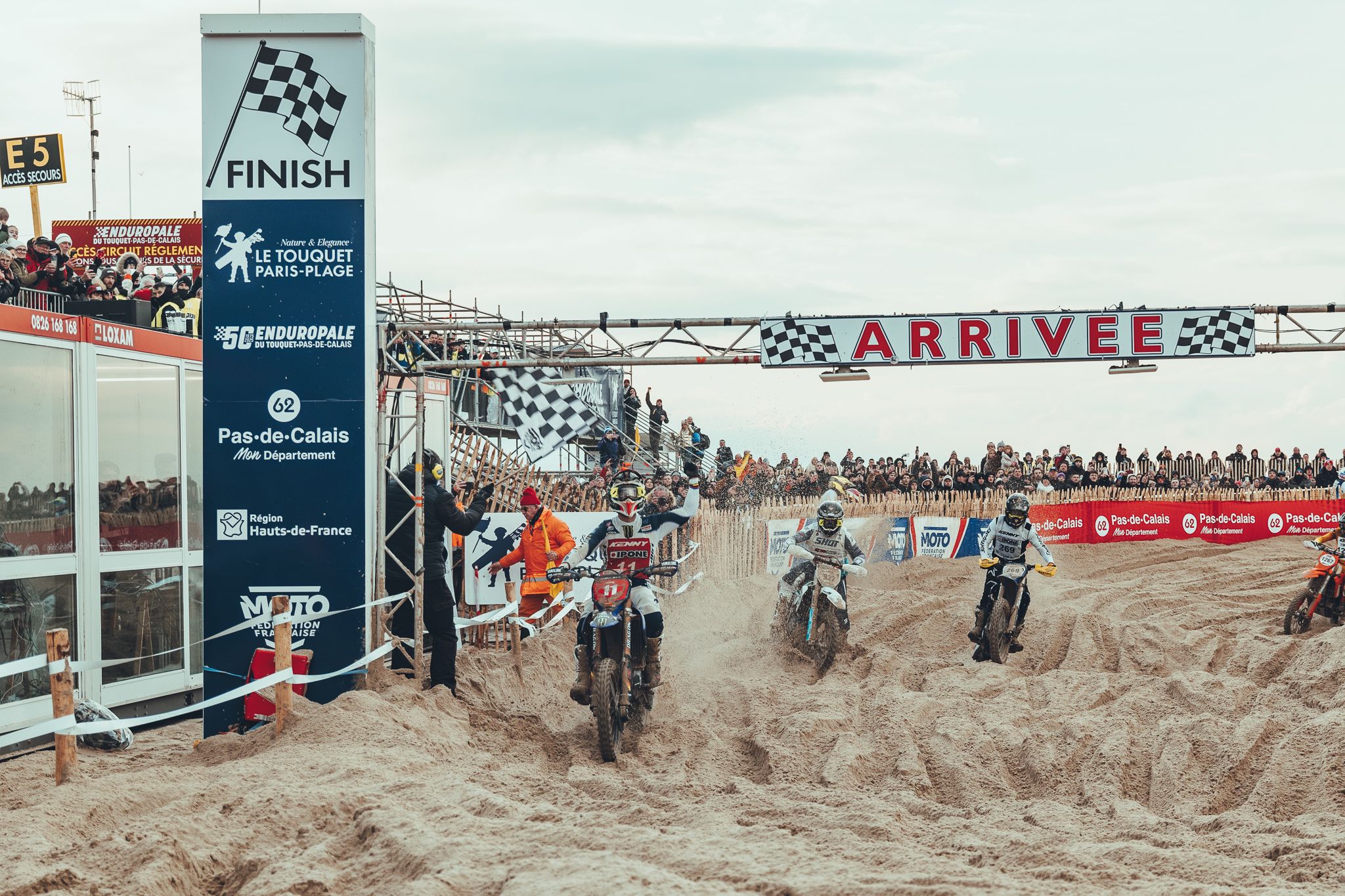 The iconic course on the coast of northern France had been extended by two kilometres to fifteen kilometres to mark the event’s fiftieth anniversary and the British Lion took the extra distance in his stride. His biggest challenge was expected to come from his team-mate and three-time Enduropale du Touquet Pas-de-Calais winner Milko Potisek, but the thirty-five-year-old Frenchman found himself over ten seconds behind after surviving the chaos of the opening lap as his compatriot Matheo Miot – Yamaha provided the early opposition to Kellett.