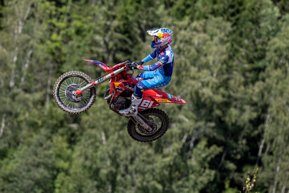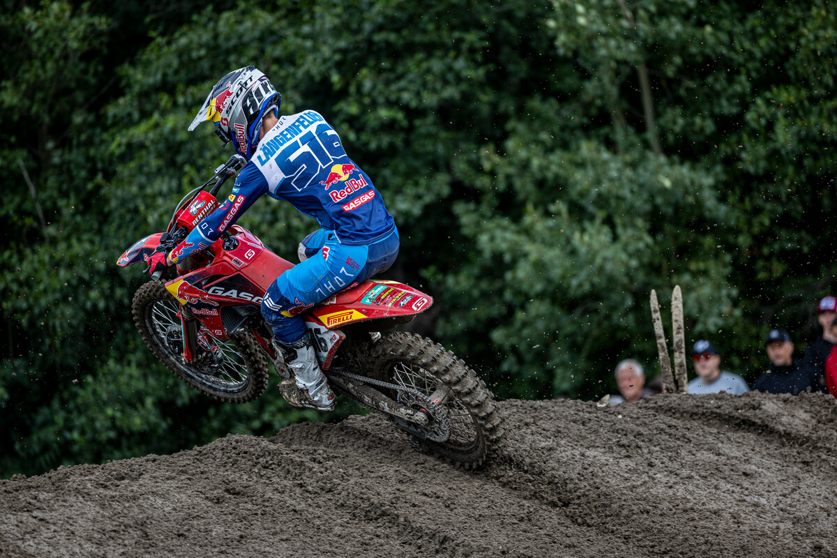 Simon Längenfelder of the Red Bull GASGAS Factory Racing squad has just won the Grand Prix of Sweden, the fifteenth stop of the 2023 FIM Motocross World Championship. Längenfelder was superb in the tricky conditions. Jorge Prado placed his MC 450F onto the podium once again in the MXGP class and maintained his series lead, ensuring that Red Bull GASGAS Factory Racing had a lot to celebrate at the historic circuit of Uddevalla.