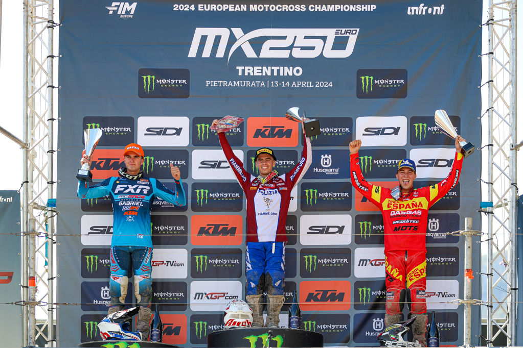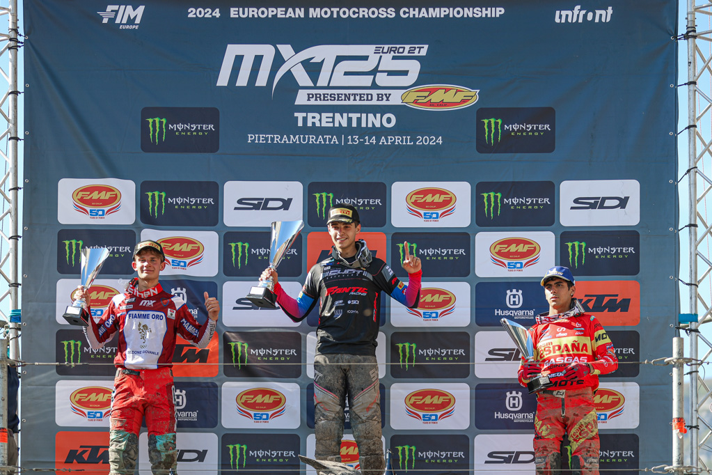 Taking place at the base of the Garda Mountains, the second round of the EMX250 and EMX125 Presented by FMF Racing unfolded like in Sardegna last week in hot temperatures not that usual for this time of year in Trentino. Amidst the demanding conditions and on a track that required complete focus on every inch of the hard-pack surface, riders were tasked with maintaining their own performance while contending with stiff competition.