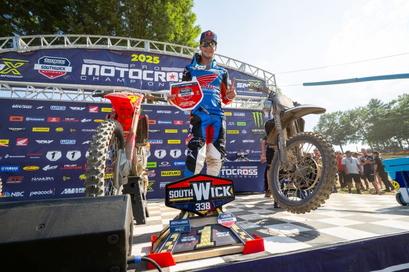 “This track is definitely the most unique track we have on the circuit, and the relentless bumps make my lower back hurt just looking at them. Our riders today made it look like it wasn’t that rough, like it was a fun track to ride while sand surfing some of the most difficult sections. I’m really happy with all three of our riders today. Jo’s comeback in the first moto after being down twice was pretty incredible. I’m also totally stoked on Hunter’s strength today being able to catch and put an incredible pass on a Southwick legend like Eli Tomac, which is unbelievably impressive. The day, though, belonged to Jett, and I don’t know how it’s humanly possible to be as good as he is. He was completely superhuman today, and he really made one of the most difficult tracks in the world look like child’s play. I’m really looking forward to next week at RedBud, where we have some really cool things planned.”