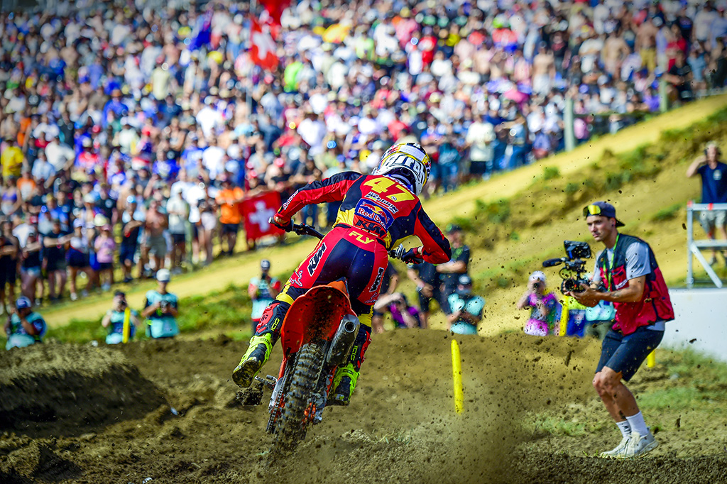 Vlaanderen then worked past Everts into fifth spot, and was advancing on the battle in front of him. Shimoda pulled a clever pass on Bonacorsi, just after the Italian had nearly snatched second from Guillod. The Japanese talisman then made short work of the Yamaha privateer to take second on lap four, but Hunter was already a long way up the track, so the Honda HRC duo finished in that order.
