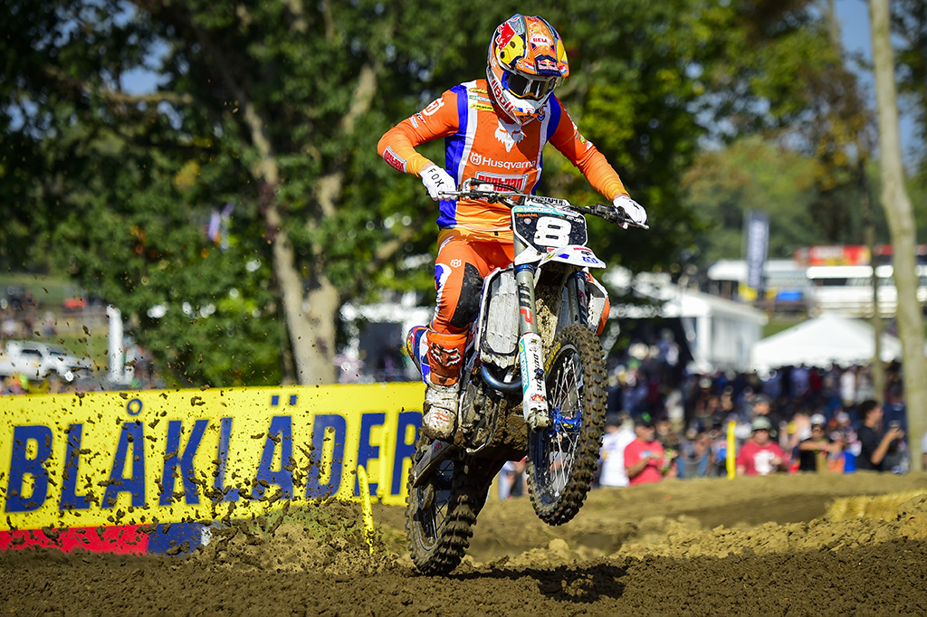 Vlaanderen drove impressively forward to claim third place and put the Dutch into second overall for the day, but Hampshire had to progress from much further back, and put his Rockstar Energy Husqvarna into a pitched battle with Bonacorsi, which thrilled for a couple of laps until the American forced to the inside on the final corner of lap eight, nerving the tall Italian just off the track! He got back on just as Everts was coming past, and the Belgian got his elbows out to take a solid fifth place, meaning that Belgium could drop Lucas Coenen’s score to take third overall. They could be the only threat to Team Australia for victory tomorrow, unless there’s a major turnaround for the home team, for whom Hampshire took fourth.