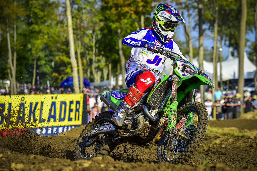 Charges from Kawasaki Racing Team MX2’s Nations rookie Mathis Valin got him up to eighth for Team France ahead of Team Latvia’s Janis Reisulis, while Adamo completed a majestic charge through the pack to claim tenth place.
