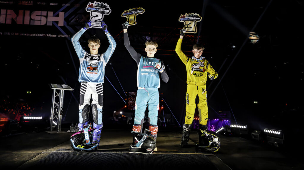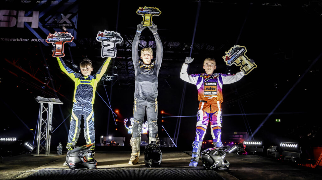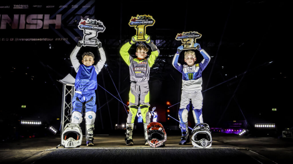 At every round of the Arenacross Tour, the youth and amateur riders bring so much to the event and often lay on racing equally as entertaining as the pro racers and Wembley will be no exception. In the Mini class Mason Staddon leads the way after his double race win in Birmingham ahead of Preston Killoran and Mason Sheilds. In the Super Mini class, George Cherry also went 1-1 being pushed all the way by John Slade who will be amped to turn the tables.