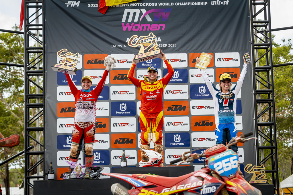 The final round of the FIM Women’s Motocross World Championship got underway Saturday and Sunday at the stunning Hidden Valley Motorsports Complex in Darwin, with an opening race that kept the title fight alive until the last checkered flag of the season. Under hot and slightly humid conditions, the track was praised by the riders for being both technical and fun to ride, setting the perfect stage for one of the most exciting showdowns of the season in front of the amazing Australian fans.
