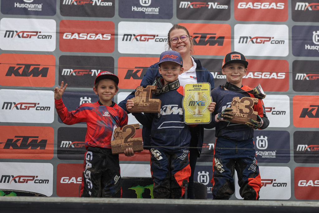 Lucas Bos was crowned 2024 Junior e-Motocross Series champion after his second-place finish in race one. Germany’s Alexander Bihimann had an impressive year in the serieson his GASGAS MC-E 5, with a race win and two podiums under his belt, to finish second overall. Taking to the final step of the podium was Frenchman Mathis Negre who earned a well-deserved third place overall.