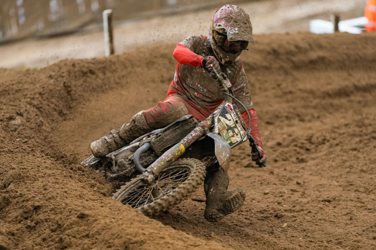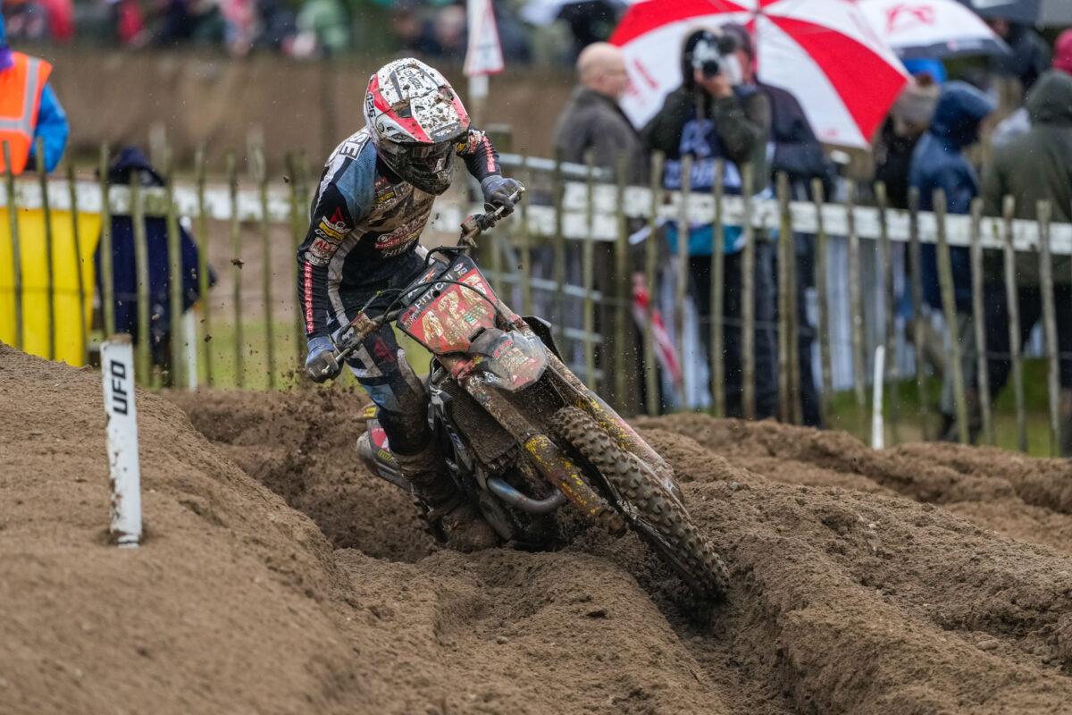 Second time out the roles were reversed as Herlings led from the start with Mewse behind. In the tough, wet conditions that saw many riders not make it to the finish, Mewse couldn’t get close enough to make a challenge but came home second, almost a minute clear of third place.