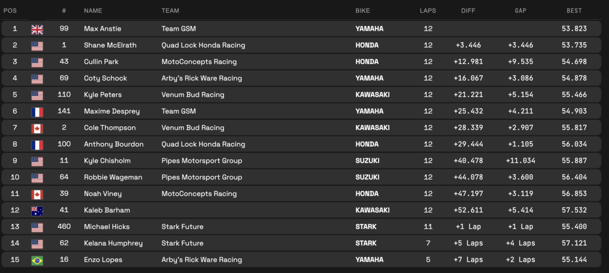Defending champion Shane McElrath has had a difficult season so far in the Supercross World Championship but a 5-3-2 finish saw him take second place in the round.