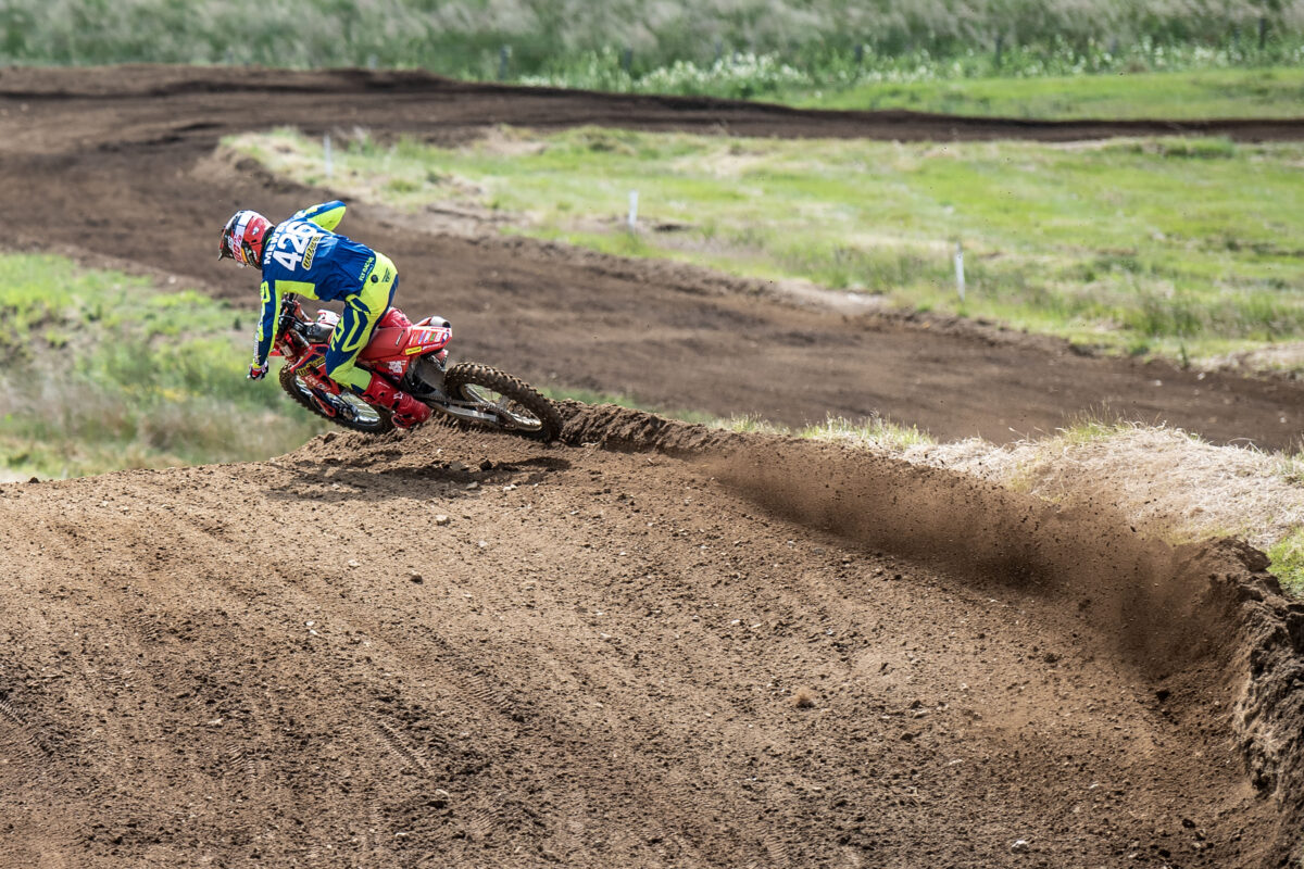In Pro MX2, Charlie Heyman clawed back his deficit to take the points lead again over Max Harris. Heyman was right in the mix with the MX1 riders, taking both motos wins in the MX2 class ahead of Glenn McCormick, who was second in each race to finish second overall, with Kyle McNicol getting on the box in third. Former Series leader Max Harris was fifth behind fourth-placed Ryan Thompson