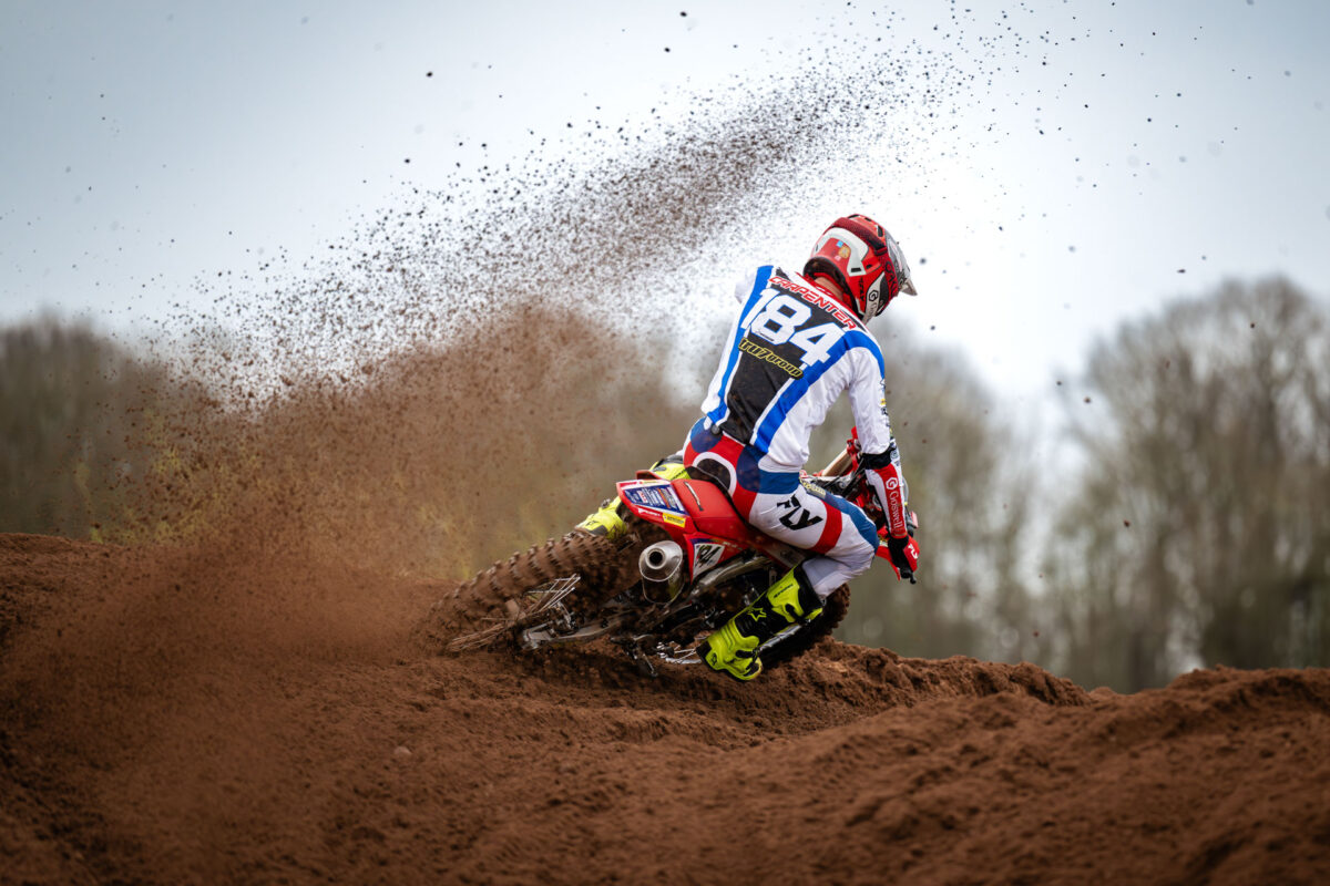 It was an all-Honda sweep of the podium at the first round of the Plews Tyres Masters Motocross championship at chilly Fatcat Motopark on Sunday with Crendon Tru7 Honda’s Conrad Mewse dominating on his Honda CRF450R and his MX1 team-mate Jamie Carpenter taking third overall in only his second race after nine months off due to injury. And the team’s 17-year-old new MX2 rookie Charlie Richmond ended up a solid ninth overall despite racing a CRF250R in the race that sees MX1 and MX2 bikes race together.