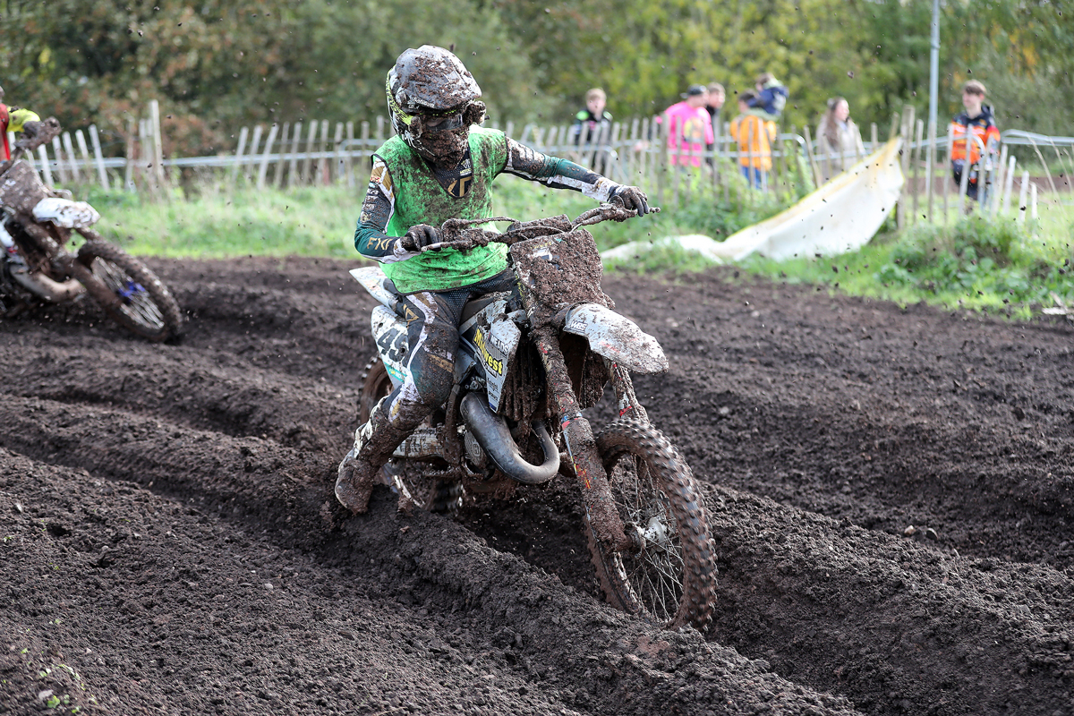 Making his racing debut for the FUS Marsh Honda team, Will Hughes made a supersonic start in the second Experts moto and thus led for a couple of laps before his FUS and Middlewich MX teammate Henry Williams came through. From here onwards, it was Williams and Hughes all the way as Sealey had another super ride to get home in 3rd with Sean Wainwright representing Coalville MCC in 4th. After posting 9th in the opener, Bull was at the top end again in this one by scoring 5th as young Wyatt McGregor picked up a very impressive 6th place competing in the Eastbourne MXC colours.