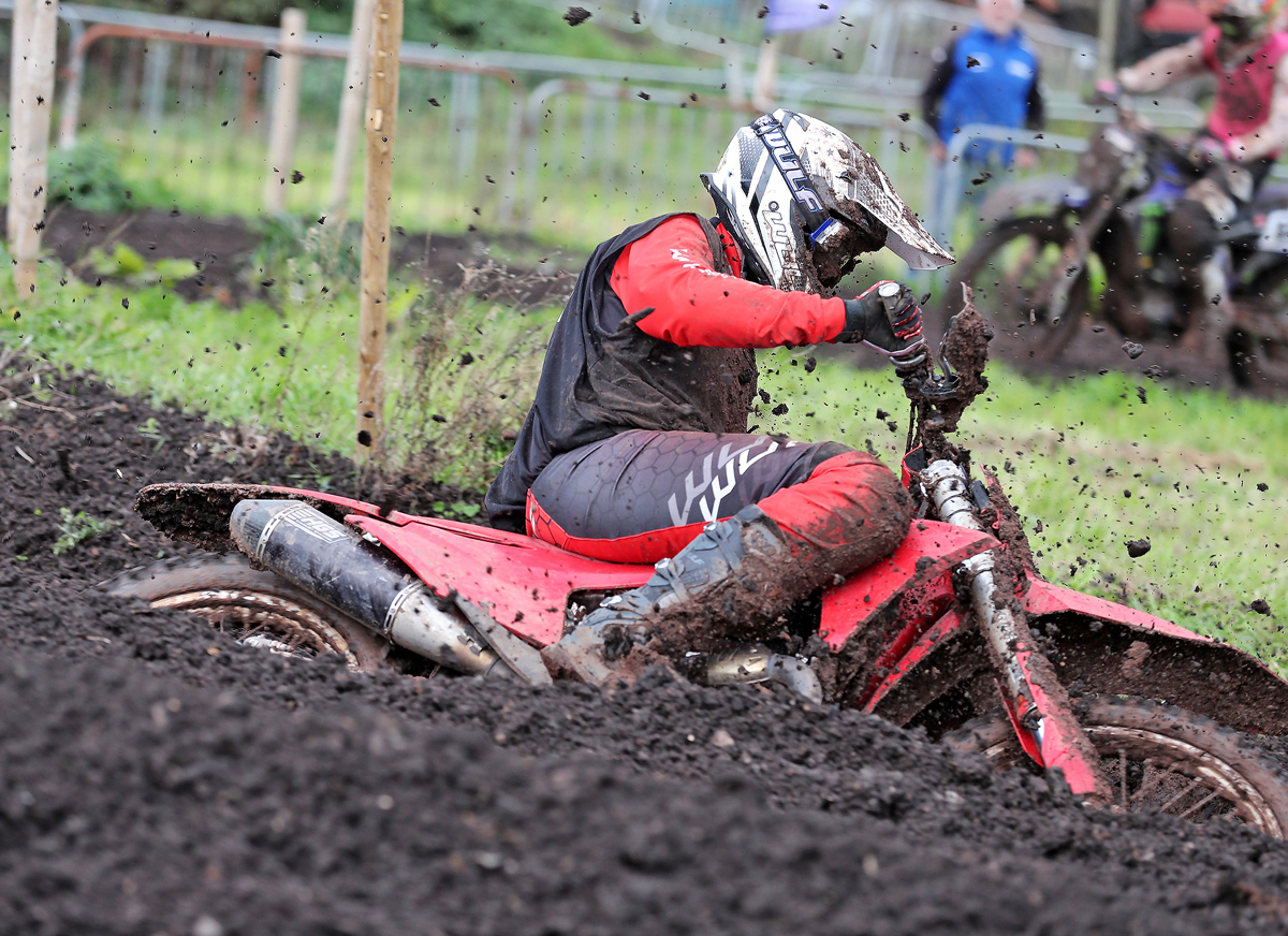 The venue for Sunday’s battle of the Clubs was Lower Drayton in Staffordshire, and taking into account the recent change to wet, inclement weather, this proved to be a very wise choice! Although the soft, loamy soil meant conditions were deep, gruelling and energy sapping, the Cannock MXC had worked overtime to ensure that the meeting would take place, so well done to them and indeed all riders and officials on getting the three blocks of racing safely completed.