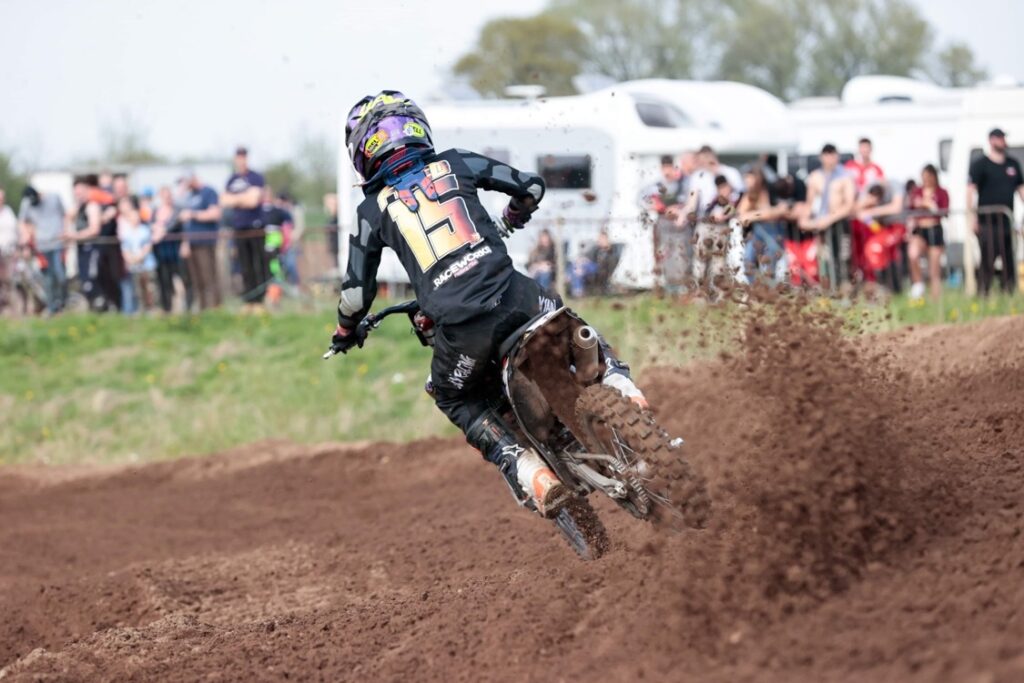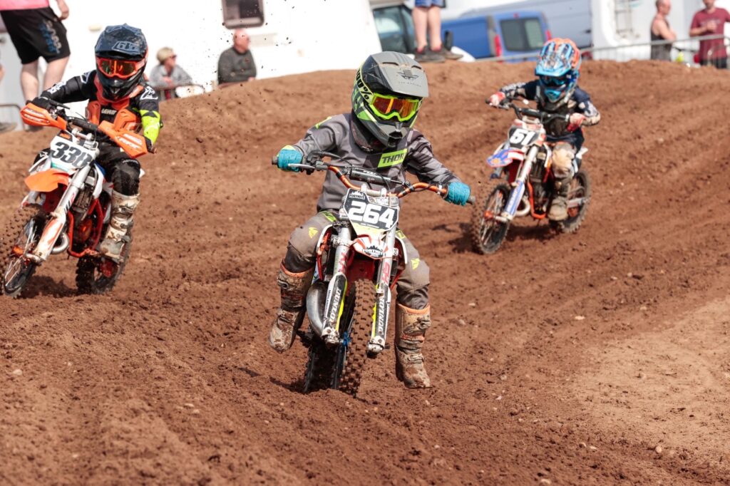In the Big Wheel class, Conor McGrath showed his class in race one, but unfortunately, his day ended after he crashed big on the first lap of the second race. This race was red-flagged, so a re-run pursued with Woz Boyce dominating the last two motos to take the overall. Great racing between pals Malachi Stratton, Alfie Best and Max Walsham saw them battling for the final podium positions. Best took second with Stratton third.