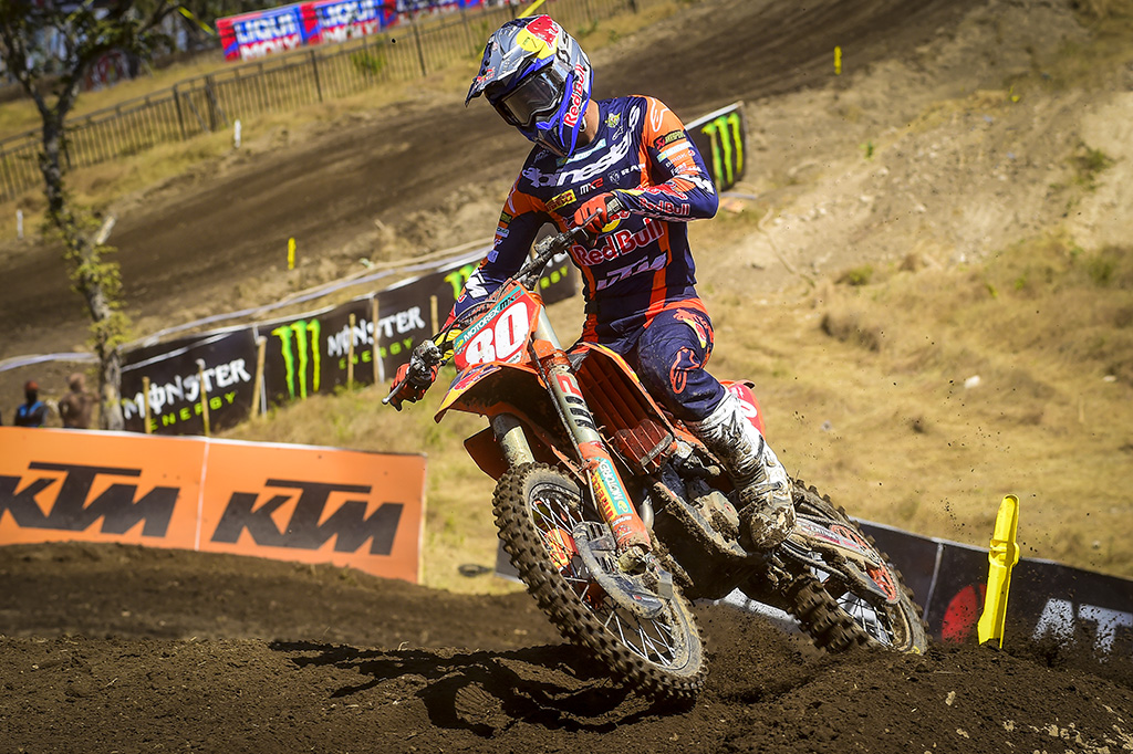 Gaining a position, Red Bull KTM Factory Racing’s Liam Everts is 5th In the Championship but levels on points with Geerts. He confirmed is remarkable performance in Germany and kept riding at the front in Sumbawa going 2-2 for the 2nd step on the podium. The young Belgian seems to be riding freely and it shows in his speed as he set the fastest lap of the Grand Prix last week in MX2. Everts is a rider on the rise and one to watch for the rest of the season.