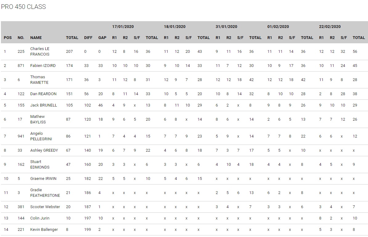 6 17 Mathew BAYLISS 12 26.187 13.723 3.496 25.256