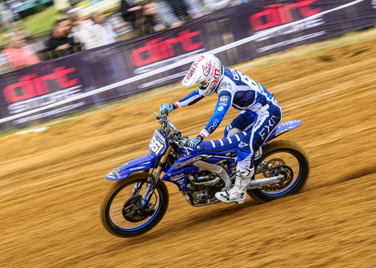 Conrad Mewse took a clean sweep in the ACU British motocross championship at Blaxhall on Sunday, setting the fastest time in qualifying, winning both motos and taking the red plate as championship leader. Mewse, who also holds the red plate in the MX Nationals series, was chased home both times by team-mate Josh Gilbert who took second overall. It also continues the incredible 100% record of the duo being on the podium at every single national event they have raced this season.