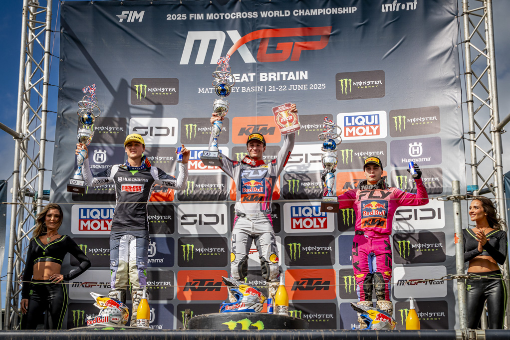 Red Bull KTM Factory Racing leapt around the sprawling windswept layout of Matterley Basin and acquired even more 2025 MXGP trophies with Simon Laengenfelder dominating the MX2 category at the British Grand Prix.
