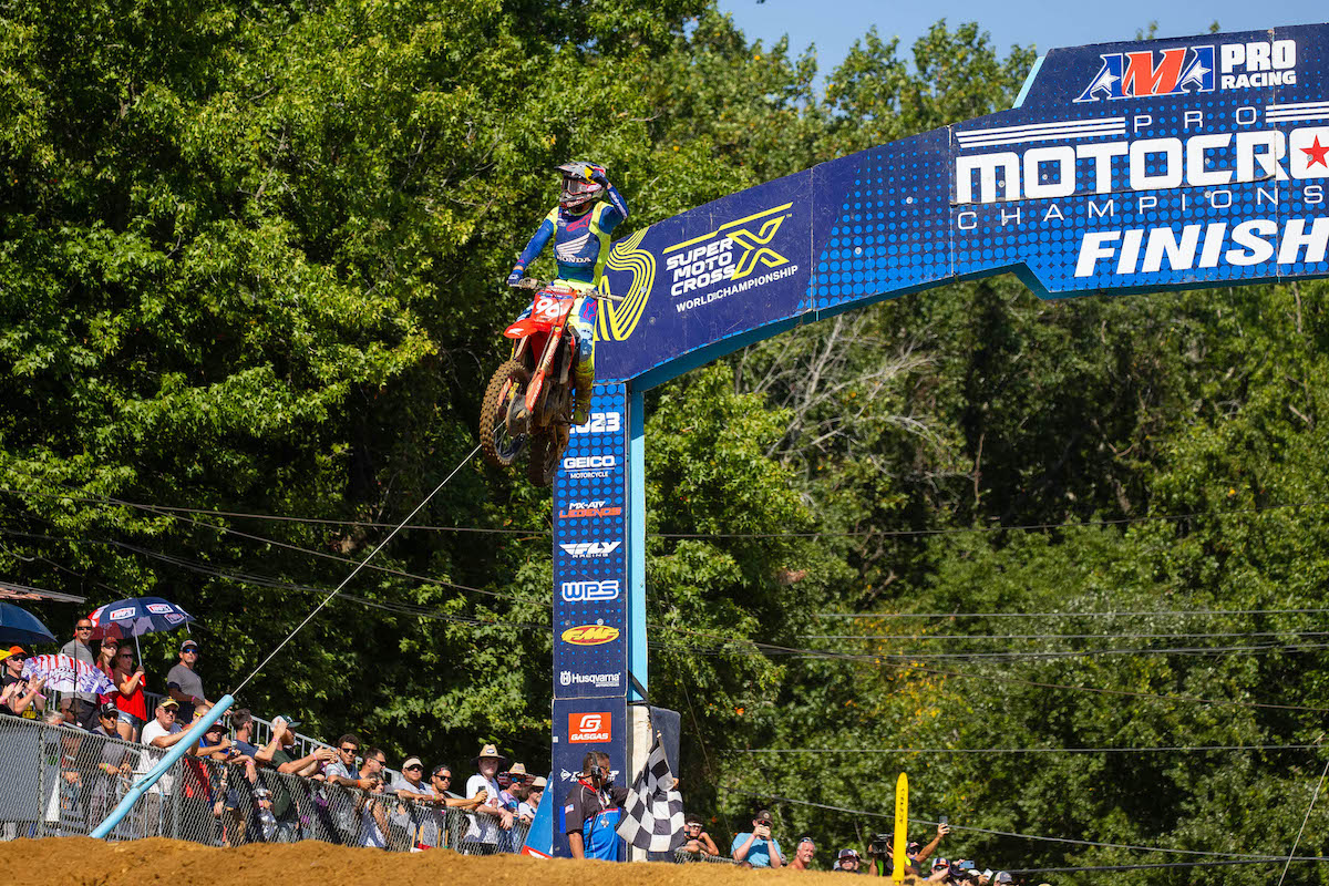 Back up front, Sexton’s never-give-up mentality saw him erase an eight-second deficit to close within striking distance of Lawrence. Mere bike lengths separated the teammates on the final lap, but Lawrence did enough to keep Sexton at bay and secure his 20th moto win to extend the perfect season.