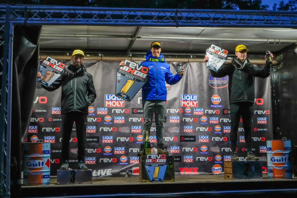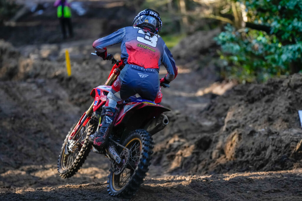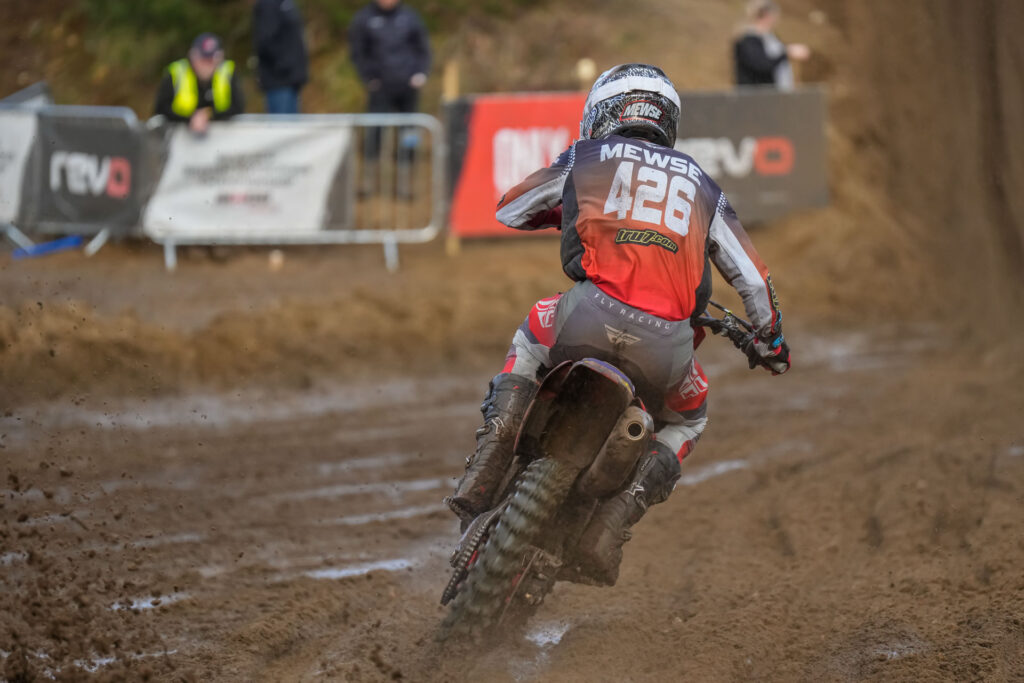 As the track got rougher, Gilbert continued to hound the leading group and briefly moved up to fourth but Mewse was in incredible form, carving through the pack to catch up then pass his team-mate. As the gruelling conditions took their toll, the British MX2 champ was the quickest man on the track, making short order of his rivals as he came through to second place behind Harri Kullas before the flag fell.