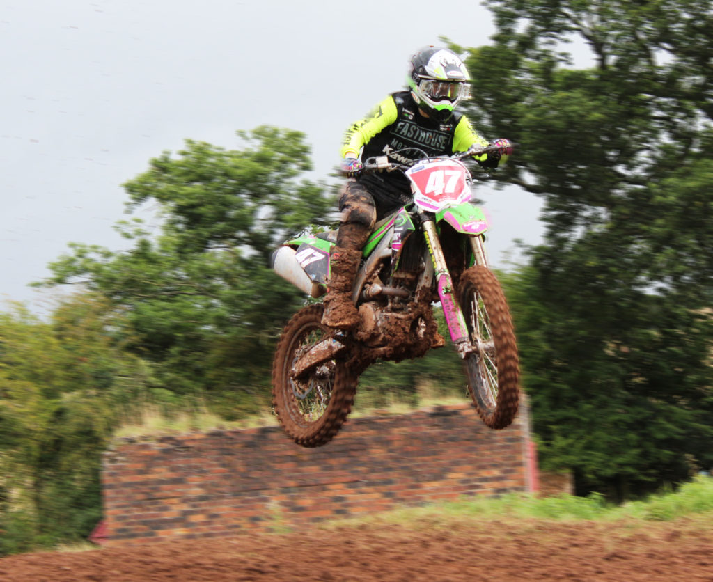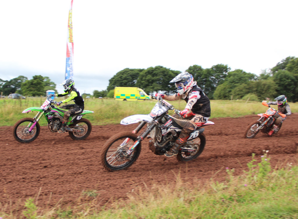 As the girls sat on the line waiting for the start it started raining but this didn’t deter them, blistering out of the gate and it was Amber McGregor taking the Muscle Doctor Holeshot by a tyres width from Reece, with Rainey half a bike length behind, McGregor set a quick pace but Reece, back on form, soon took the lead and rode a steady controlled race, Rees-Evans was riding her heart out as she picked her way through the pack setting fastest time of the race but couldn’t catch Reece, settling for 2nd, Amber McGregor kept Rainey at bay but only half a second separated them at the flag with Millie Sweeney rounding out the top 5.