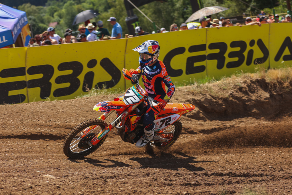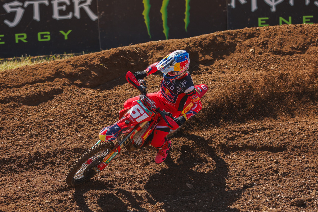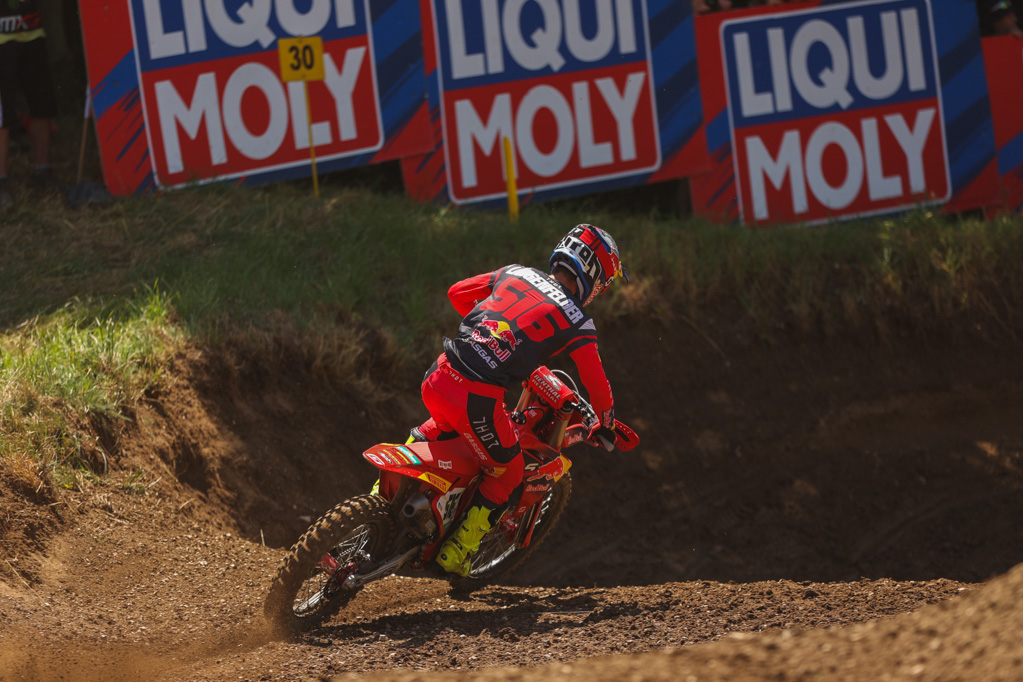 The first day of the MXGP of Czech Republic held its promises during the RAM Qualifying Races with Red Bull GASGAS Factory Racing’s Jorge Prado in MXGP and Red Bull KTM Factory Racing’s Andrea Adamo in MX2 both dominating their races.
