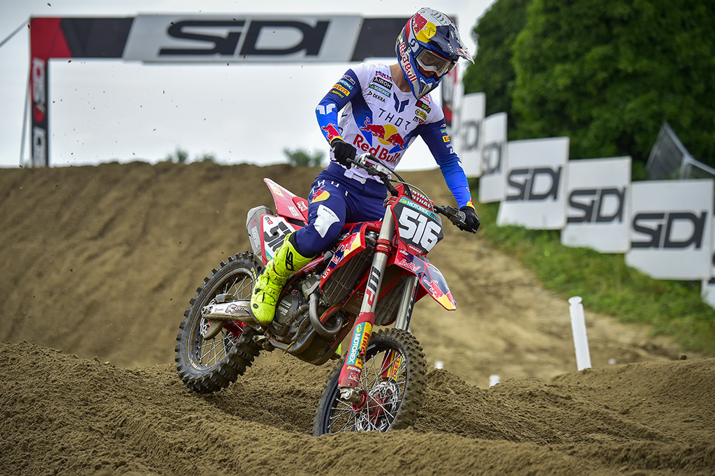 Karlis Reisulis brought his Monster Energy Yamaha Factory MX2 machine home in seventh ahead of Sacha Coenen, while Ferruccio Zanchi mounted a heroic comeback from the very back of the field to take ninth for Team HRC. Dutchman Scott Smulders also advanced well to take the final point for KMR Honda Racing Team Powered by Krettek.