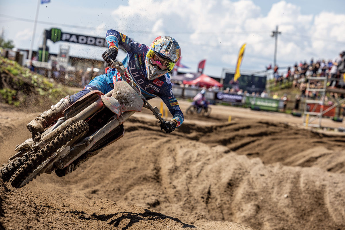 Much like his teammate, Simon Längenfelder stormed to pole position in the MX2 division and was a real revelation in the two motos that followed the qualification heat. The same ranking, a second, was secured in each moto, yet the execution was very different each time. ‘516’ shadowed the leader to claim the spot in moto one – he was just two seconds adrift when the checkered flag flew. Although a crash on the first lap of moto two threatened to halt his podium bid, he jumped up and showcased great pace. Längenfelder charged to second and recorded lap times that were more than half a second faster than anyone else! 2-2 scores put him second overall, unsurprisingly, and helped him climb to fifth in the standings.