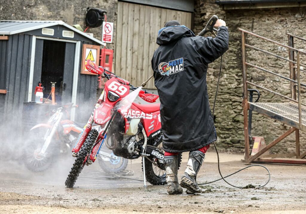 We recently tested the MOTO MAC Absolute MAC and were pleasantly surprised. MOTOMAC describes this wardrobe staple as “the ultimate protection from the elements”, so we wanted to see if it really did what it says on the tin. It is recommended to be worn for both the rider and the spectator/mechanic/parent. Whether it be in between motos on a cold, damp day (almost everyday in the UK), trackside getting that perfect instagram shot or the dreaded washing of the bike at the end of the day. The MAC has many uses and for many users.