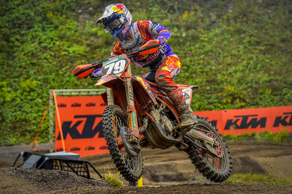 Geerts showed again all his determination after not the best start. 6th on the turn of the first lap, the Belgian pushed hard behind Red Bull KTM Factory Racing’s Liam Everts who was holding his ground until lap 4 of 13 when he lost his drive and seemed to be slowing down, losing 3 positions in total for a moment. Geerts kept charging forward overtaking WZ Racing Team’s Oriol Oliver and his teammate Monster Energy Yamaha Factory MX2 Team’s Rick Elzinga over the course of two laps to finish 3rd in the end.