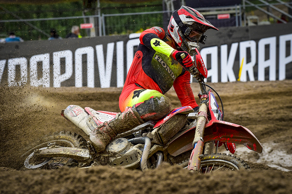 Closing the top 10 and gaining 1 point was the returning champion Herlings who had to battle after an average start in 13th on the turn of lap 1. On this difficult track, it took Herlings few laps behind a good JWR Honda Racing’s Alvin Östlund to be able to make a pass. Eventually on lap 9, Herlings made a forceful move after a jump to get on the inside of Ostlund and moved up to 10th. Ostlund could not defend on Herlings’ attack and had to settle for the 11th.