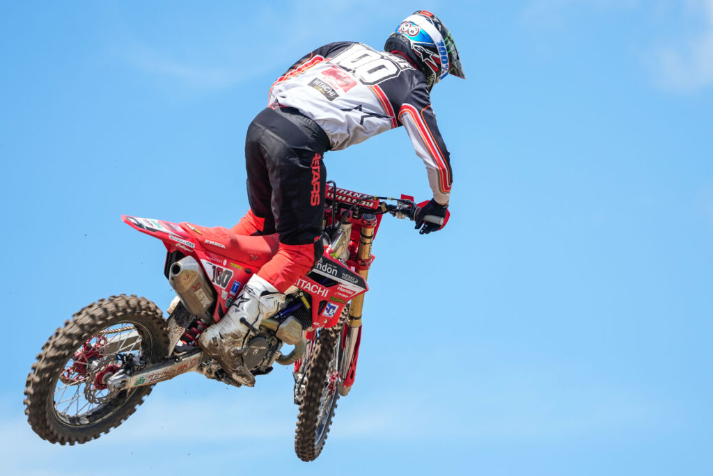 It was a solid day for the team’s MX2 rider Jay Hague, as his comeback from breaking ribs and bruising his spleen in a crash while testing continues. He took a creditable fifth overall after seventh then fifth place finishes. He had some thrilling battles with the MX2 championship leaders and matched their lap times to show he’s on the pace.