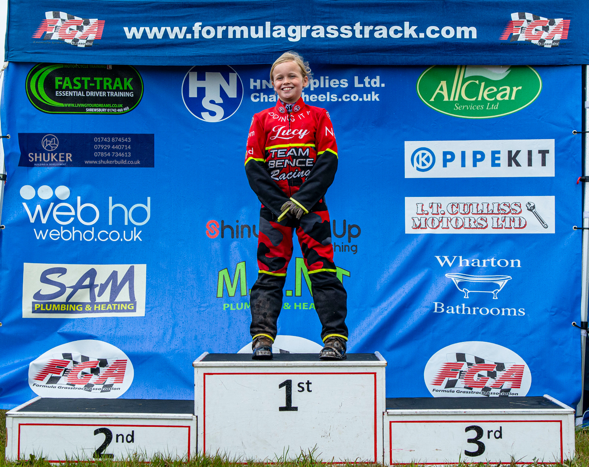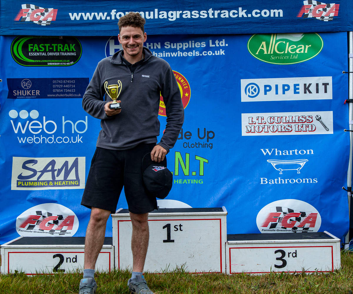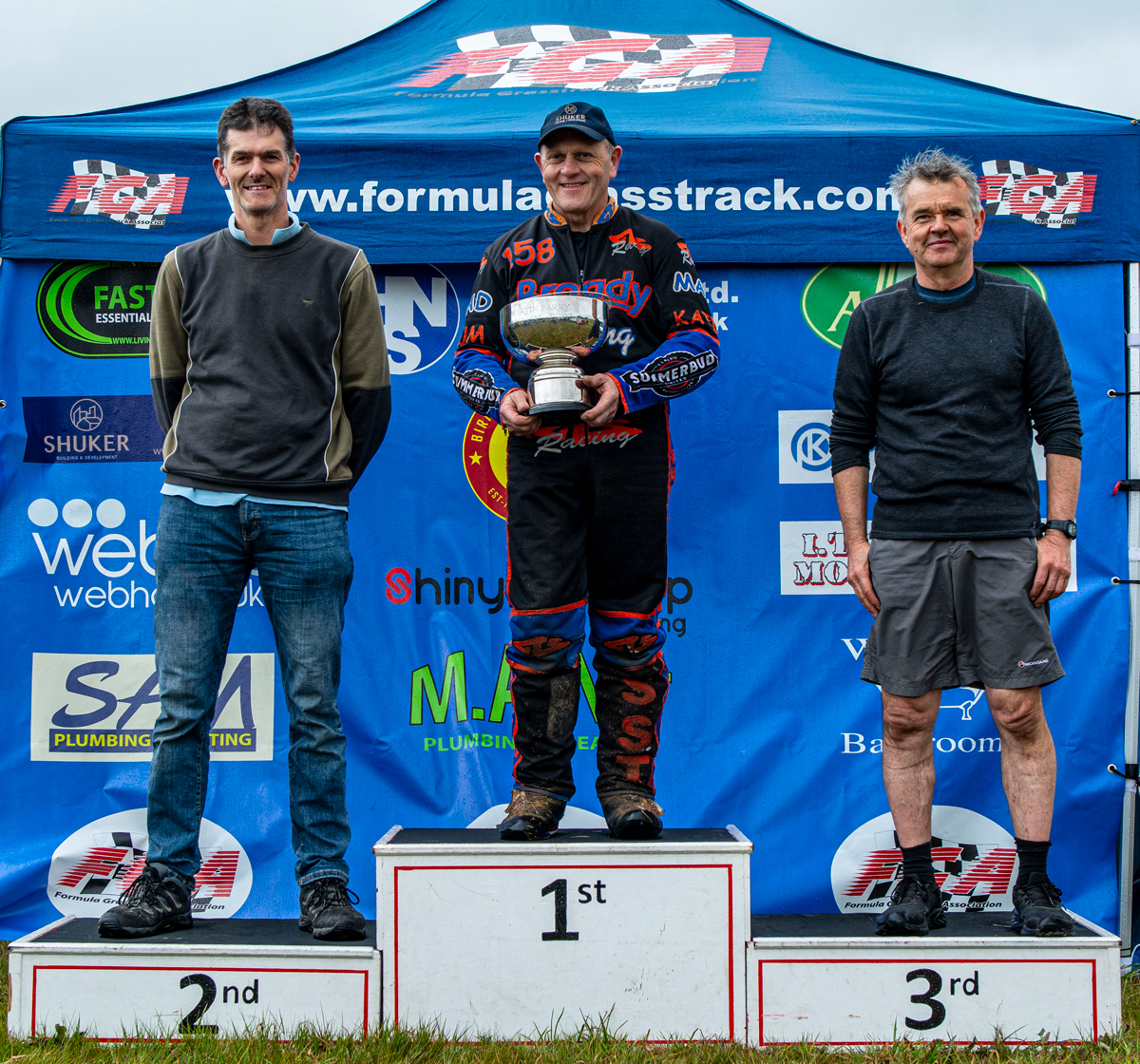 The Senior B final saw Andrew Rowson return to winning ways, who was on different machinery for round seven, with Ben Crabtree riding superbly to take second place ahead of Anthony Rowson who spent the day on brother Andrew’s usual bike following issues with his own. Charlie Glaze secured fourth place, Russell Hall splitting the Glaze brothers, with Oliver taking sixth. Sam Crabtree took an unfortunate tumble, after his best showing yet in the FGA series. Elwyn Beedles failed to start after also falling in his final qualifying heat.
