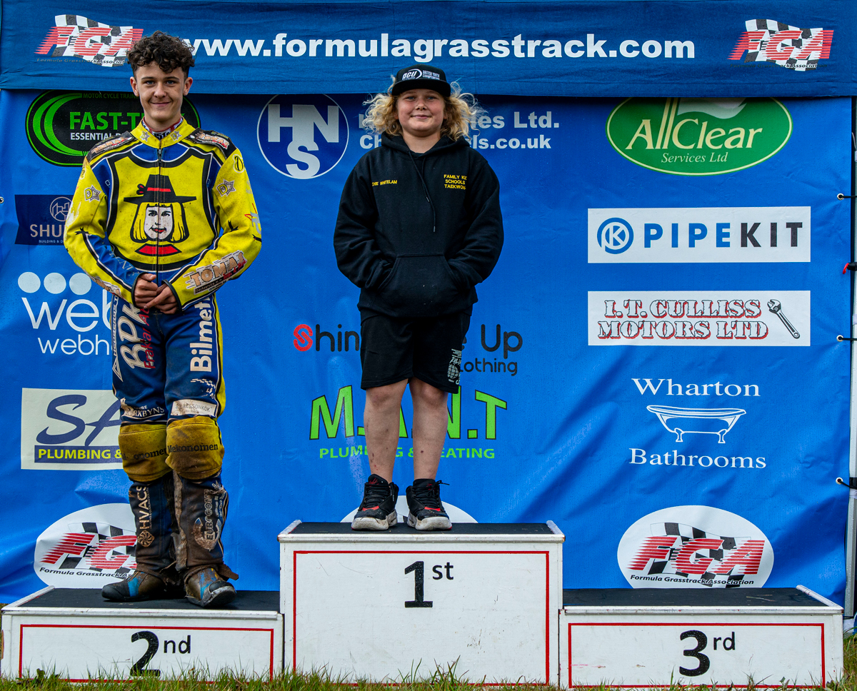 The Juniors class saw the return of Roman Ratcliffe, taking maximum championship points on the day, despite a late charge from Archie Whitelam who excelled in the mixed conditions. Despite machine troubles in the first half of the meeting, Whitelam took three straight heat wins and again in the Juniors final.