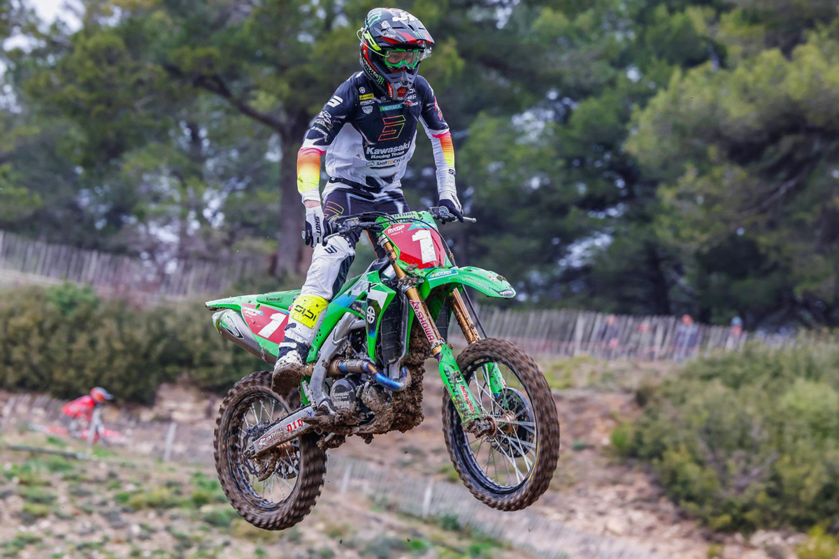 The Kawasaki Racing Team MXGP of Romain Febvre, Pauls Jonass and Mathis Valin each raced to the podium in their first shake-down race of the 2026 season at Pernes-les-Fontaines in southern France.