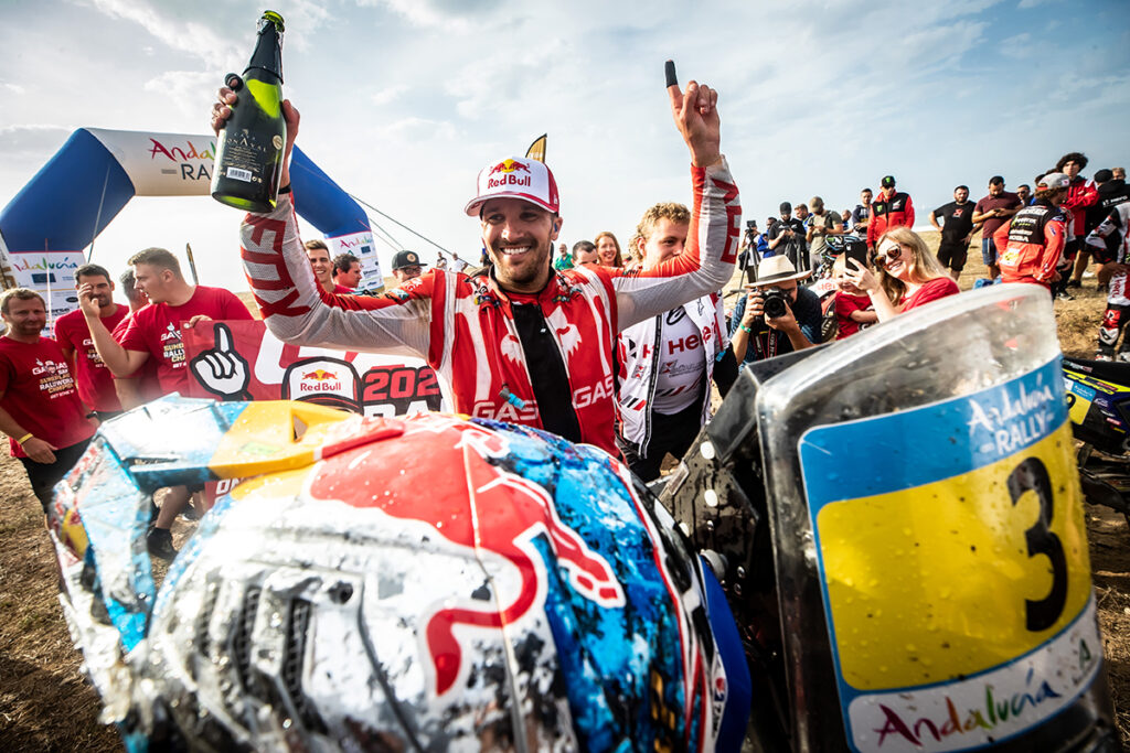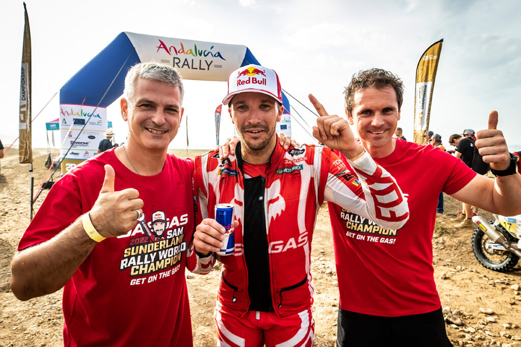 A couple of mistakes on the penultimate stage and an unfortunate time penalty ruled out any chance of ending the season with a podium result. But knowing that he just needed to complete the final stage to be crowned champion, Sam did exactly that to lift the 2022 FIM World Rally-Raid Championship trophy surrounded by the entire GASGAS Factory Racing team.