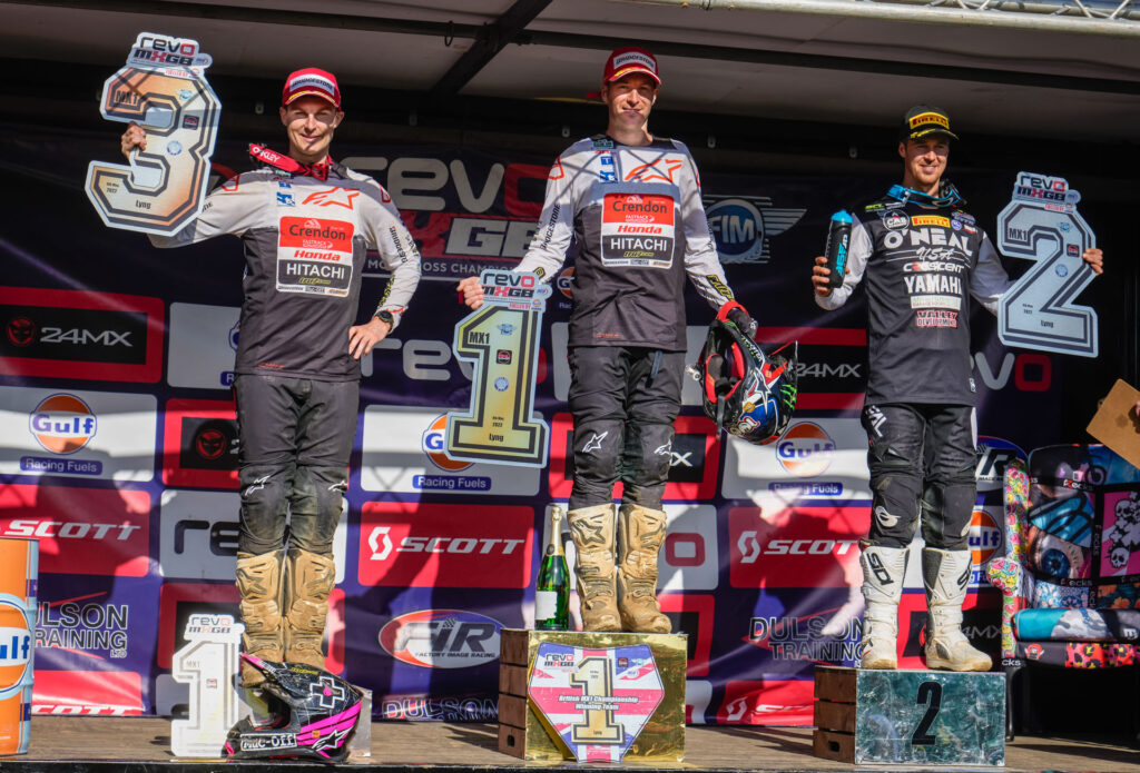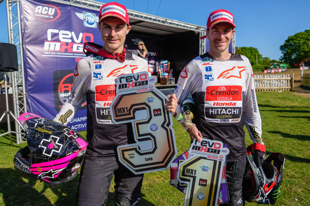 The Crendon Fastrack Honda team of Tommy Searle and Jake Nicholls both ended up on the MX1 podium in round three of the British championship at Lyng on Sunday after some close and thrilling racing. Red plate holder Searle took the overall victory on his Honda CRF450R while Nicholls took a fantastic third overall – his first time on the British championship podium since he won at Hawkstone Park in August 2018.