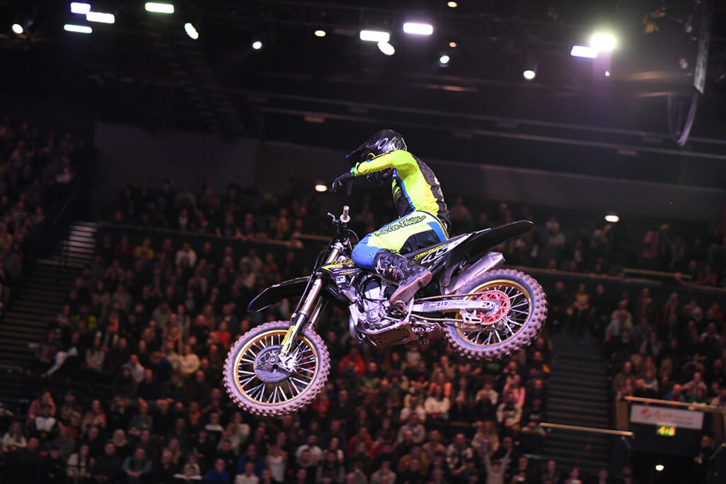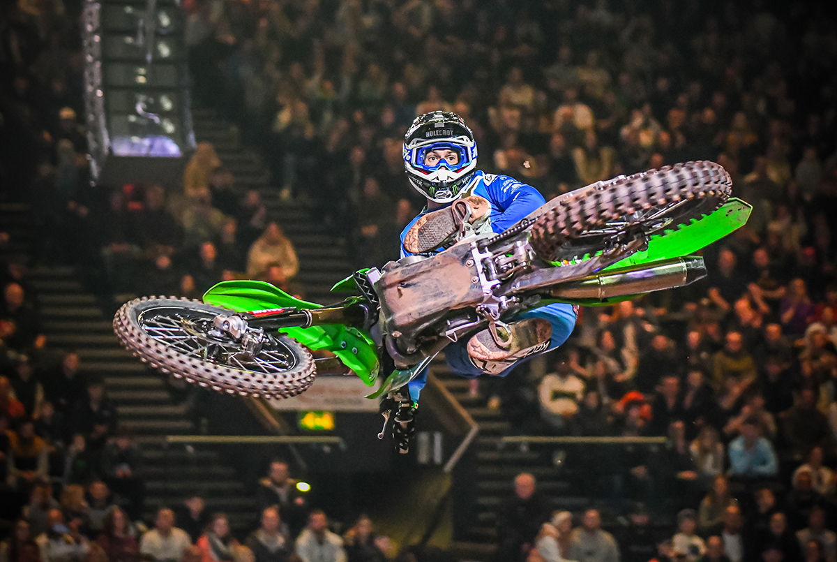 Tommy Searle, GTCi Revo Kawasaki cleaned up at the fifth round of the British Arenacross Championship with a flawless performance in both Pro heats and the Main Event final.