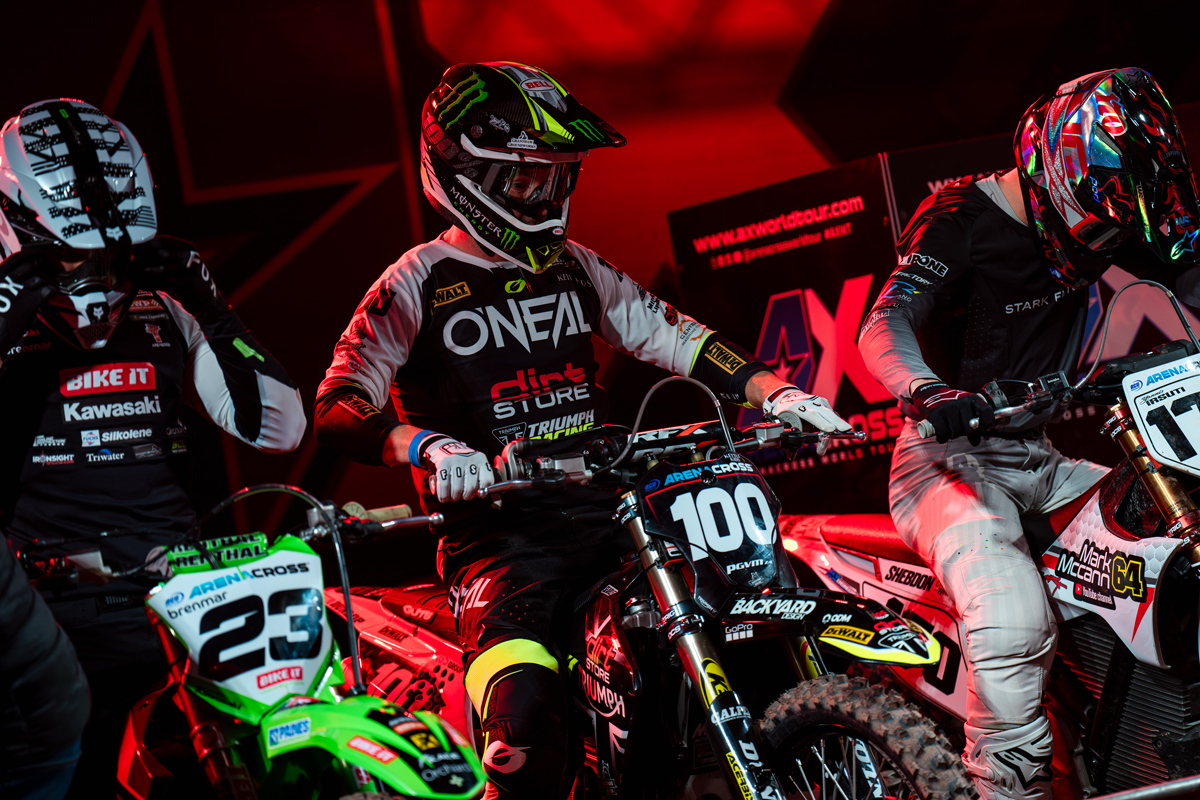 The team’s solo entrant, Tommy Searle, lined up to debut the 2025 Triumph TF 250-X alongside a wealth of Arenacross talent. The track looked tight and technical, as expected for an AX event, but the team were eager to get the season underway.