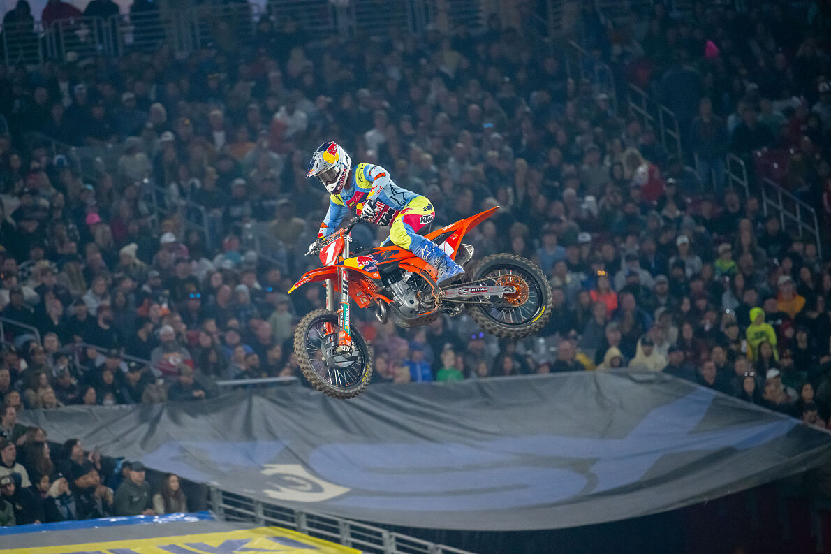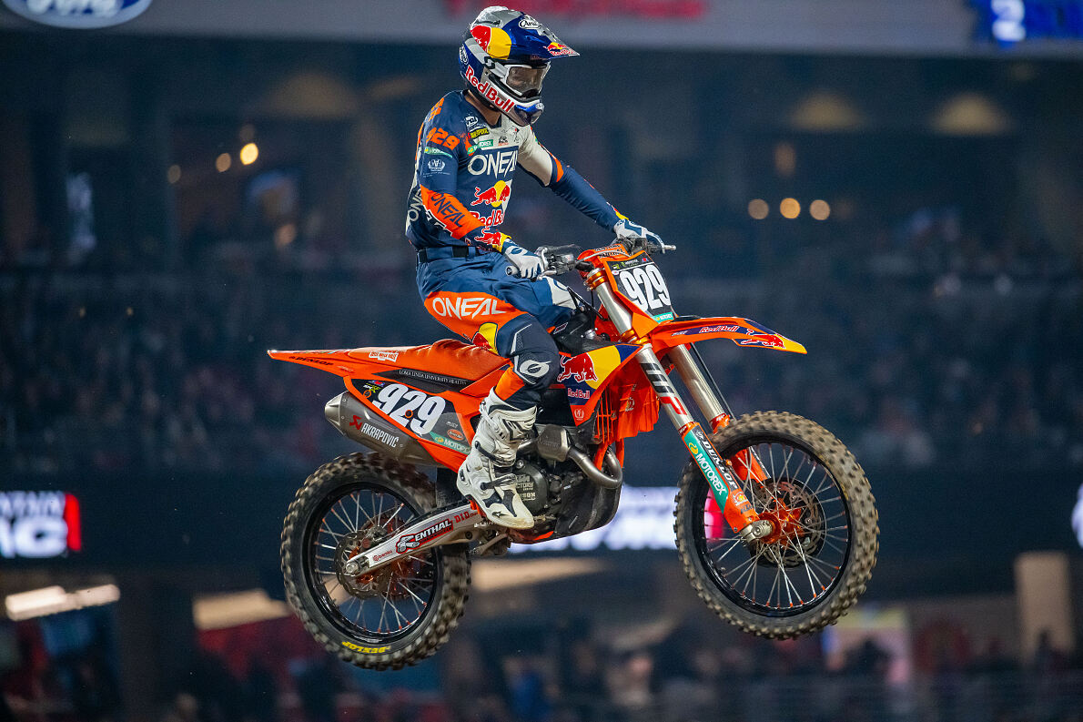 Red Bull KTM Factory Racing remains in the title hunt after enduring a challenging night of racing at Round 6 of the 2024 AMA Supercross Championship, with 450SX riders Chase Sexton and Aaron Plessinger rounding out the top 10 in the Main Event, while 250SX West Class rookie Julien Beaumer rode to a seventh-place finish.