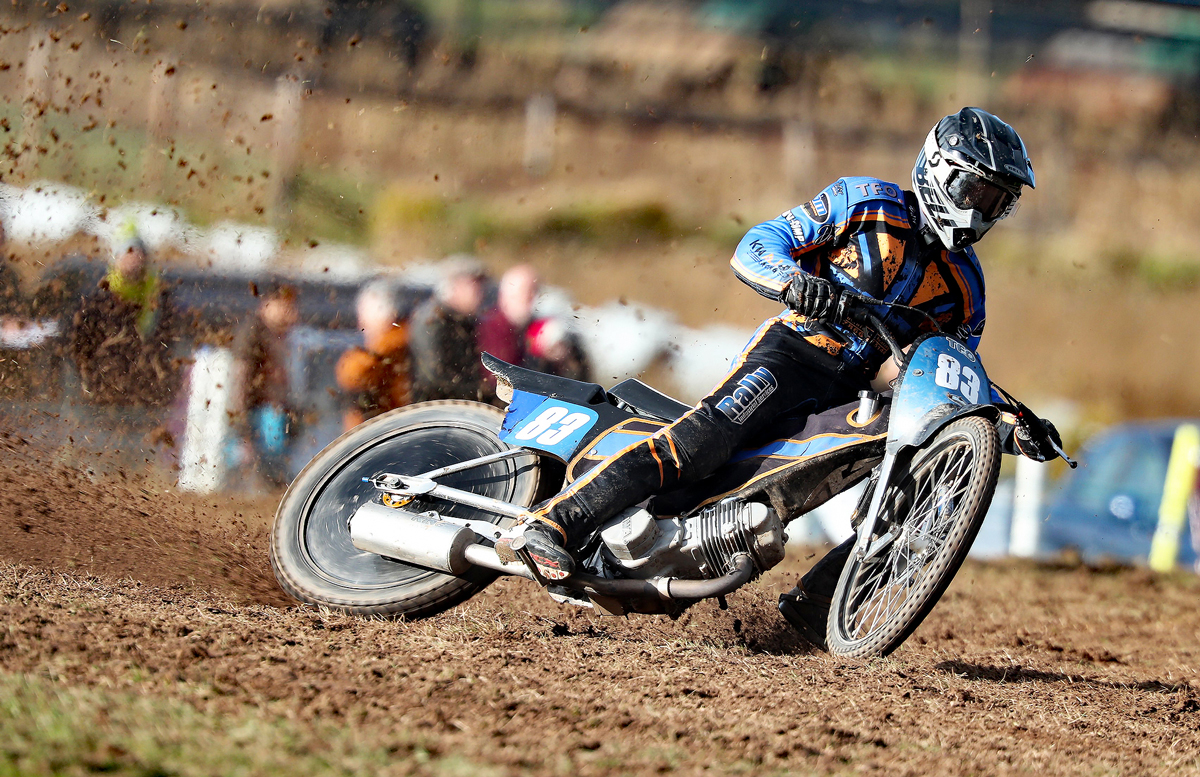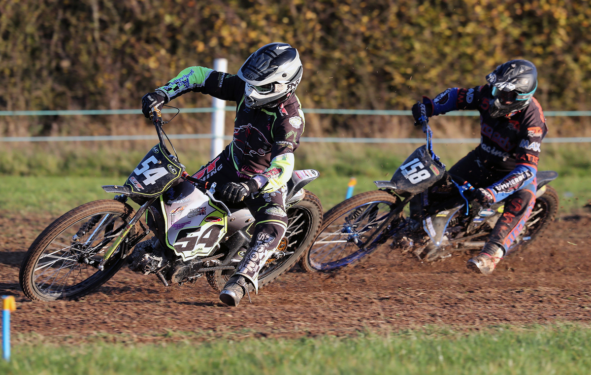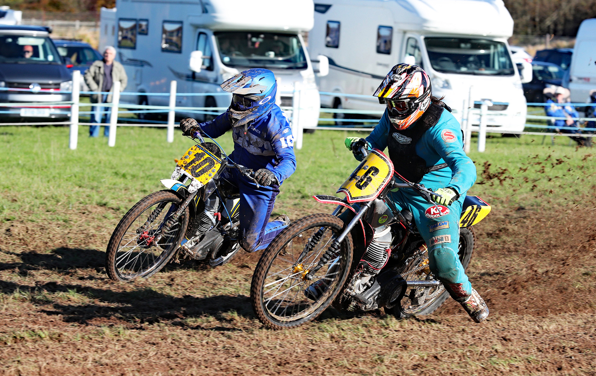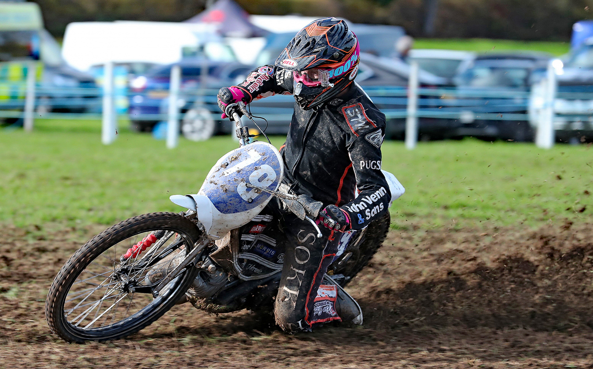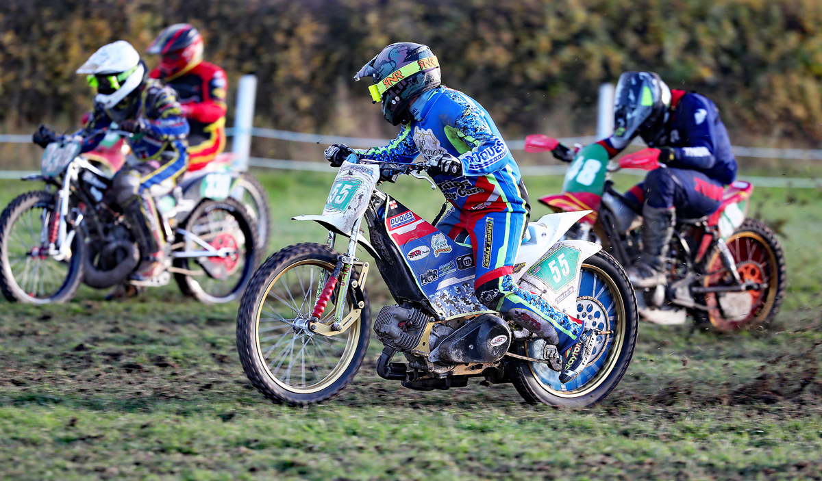 Grasstrack racing in November, no way most people would say! Well, thanks to the Leamington Victory MCC, it did actually happen! They not only completed a very busy 56 heat programme, but it was done without very little incident and all wrapped up by 3.45pm, including a necessary track grade to remove a big surplus of loose material!