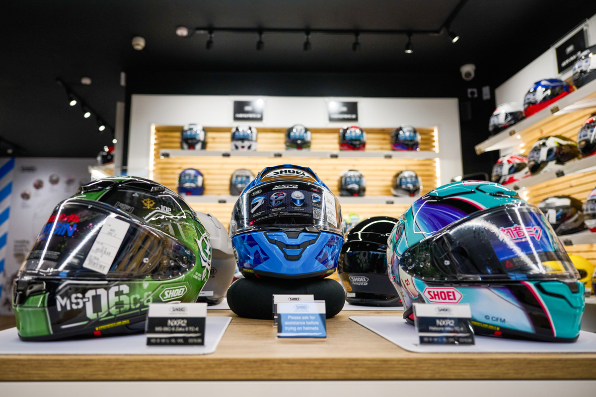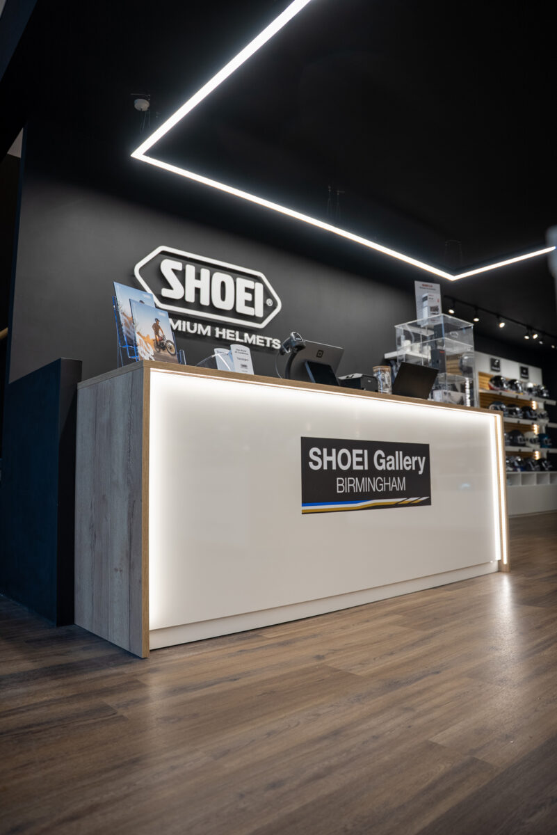 The Shoei Gallery Birmingham is now fully open to the public, offering the complete current Shoei helmet range in all sizes and colourways. Riders can access Shoei’s Personal Fitting Service (PFS), helmet servicing and genuine spare parts support, all within a premium environment. Located above the Gallery, the Spada Loft showcases the latest Spada clothing and equipment collections, creating a dedicated destination for riders in Birmingham.